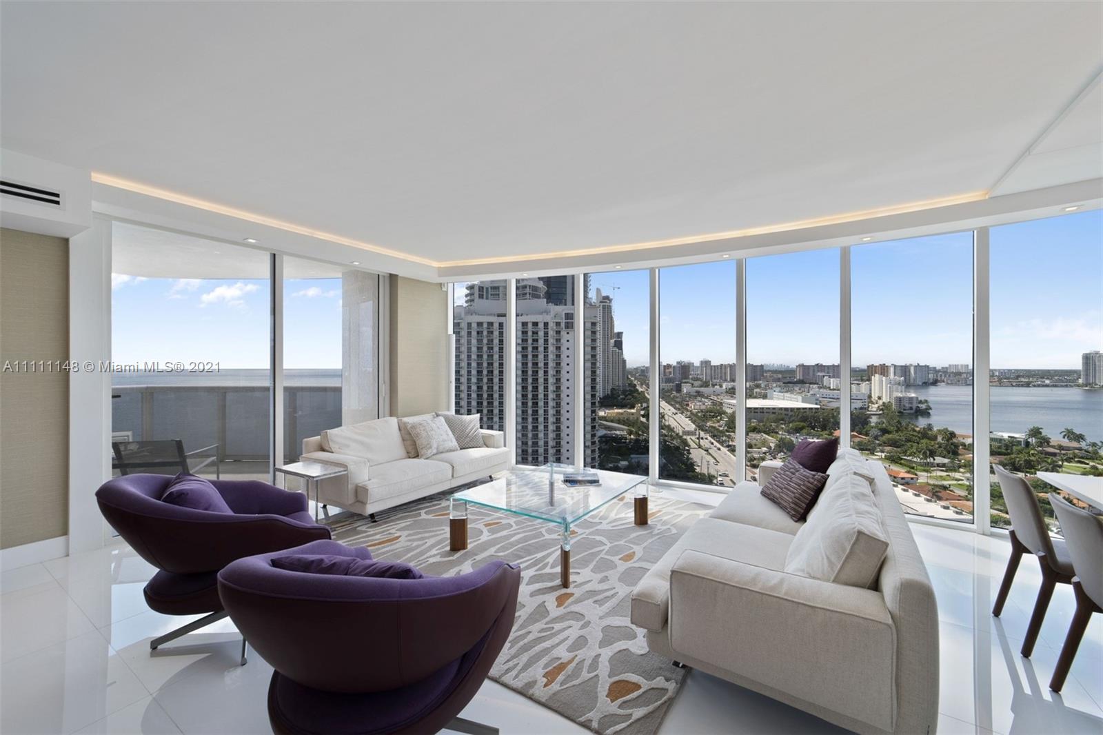 Beautiful Modern Corner Unit,Direct Ocean and Bay View, rarely available line 05. 3 bedrooms and 3 1/2 Baths, Completely renovated, designer finished, marble floor through out entire apartment, with private elevator and foyer entrance. Luxury building, amenities include Oceanfront pool, rooftop Jacuzzi, gym, sauna, steam and party room, tennis court, 24 hours security, free valet parking, restaurant and beach service. Spectacular location in the heart of Sunny Isle. Can be sold furnished, price can be negotiated, is not part of the price. 24 hours notice, Easy to show, pls use showing assist or text listing agent.