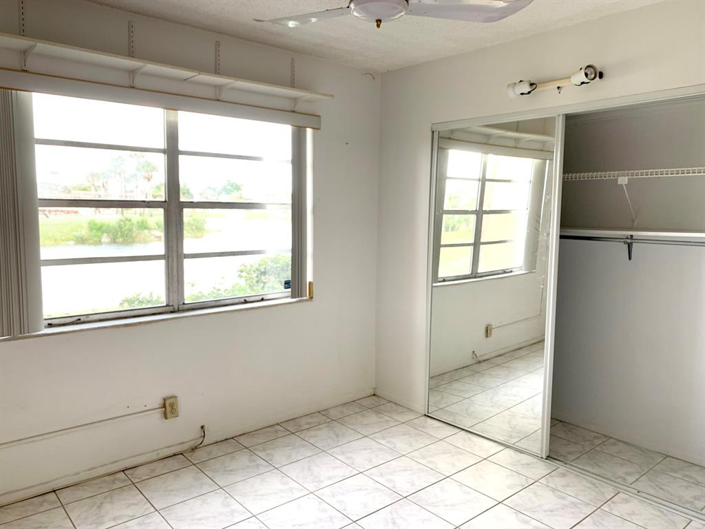 Ground Floor condo alert! This 2 bedroom/ 2 bath, 1st floor condo has a beautiful waterfront view of the lake & club house. Tile flooring throughout. This unit can either be a blank canvas to create your dreams or move in as is (Everything is in working order). This condo is perfectly located for a short walk to the club house where you will find a pool, billiards, art room, theater, library, club house, fitness center, bocce ball & shuffle board. Golden Lakes offers many activities, clubs & social events & a short ride to Downtown WPB