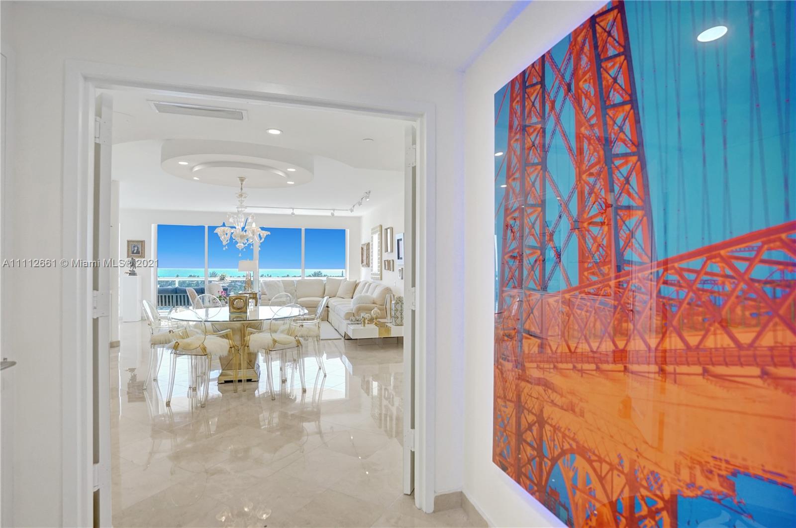 Enter this luxurious residence, a real gem, through your private elevator and immediately enjoy breathtaking direct Ocean & Intracoastal views. 628 Sq. Ft of outdoor space accessible from all rooms. Features marble floors throughout & porcelain tile in two of the bedrooms, floor-to-ceiling sliders, hurricane impact windows, LED lighting, Steven G designed architectural elements & more. Contemporary kitchen, 2019 appliances, granite counters, backsplash & island, updated electrical wiring circuits, new plumbing & total gut renovation in Baths. The 3rd bedroom, being used as a media room. Separate office in master bd. One Island Place, has direct access to the Waterways Marina, new fitness center, spa w/private treatment room, sauna, steam room, 2 pools, 2 whirlpools, café, 2 tennis courts.