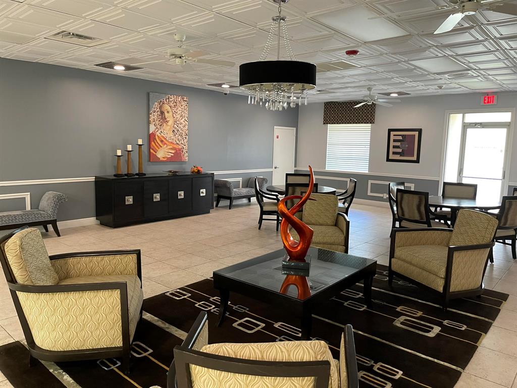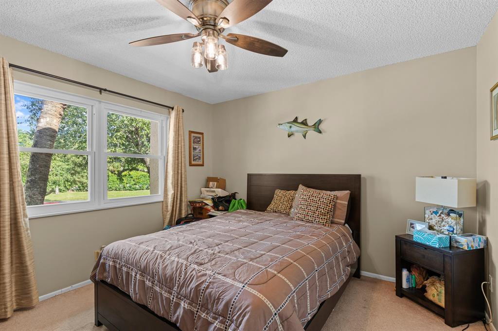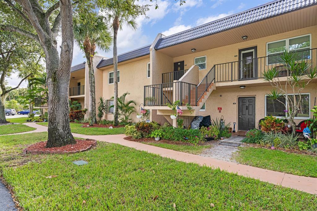 Fabulous Floridian Condo in Exclusive 55+ Community! Conveniently located in the amenity-rich and 24/7 guard-gated community of Golden Lakes Village, this spacious 2BR/2BA, welcomes with a freshly painted interior, an openly flowing traditional floorplan, an expansive living room, and a fully equipped kitchen featuring newer stainless-steel appliances, solid surface countertops, ample cabinetry, dishwasher, electric range/oven, and an adjoining dining area. Thoughtfully planned for entertaining and the enjoyment of colorful sunsets, the large screened-in 31' X 6' patio offers a delightful space for coffee and conversation. Sleep easy in the sizeable primary bedroom, which has a deep walk-in closet and an attached en suite boasting a Bath Fitter shower with a seat and grab bars. SEE MORE