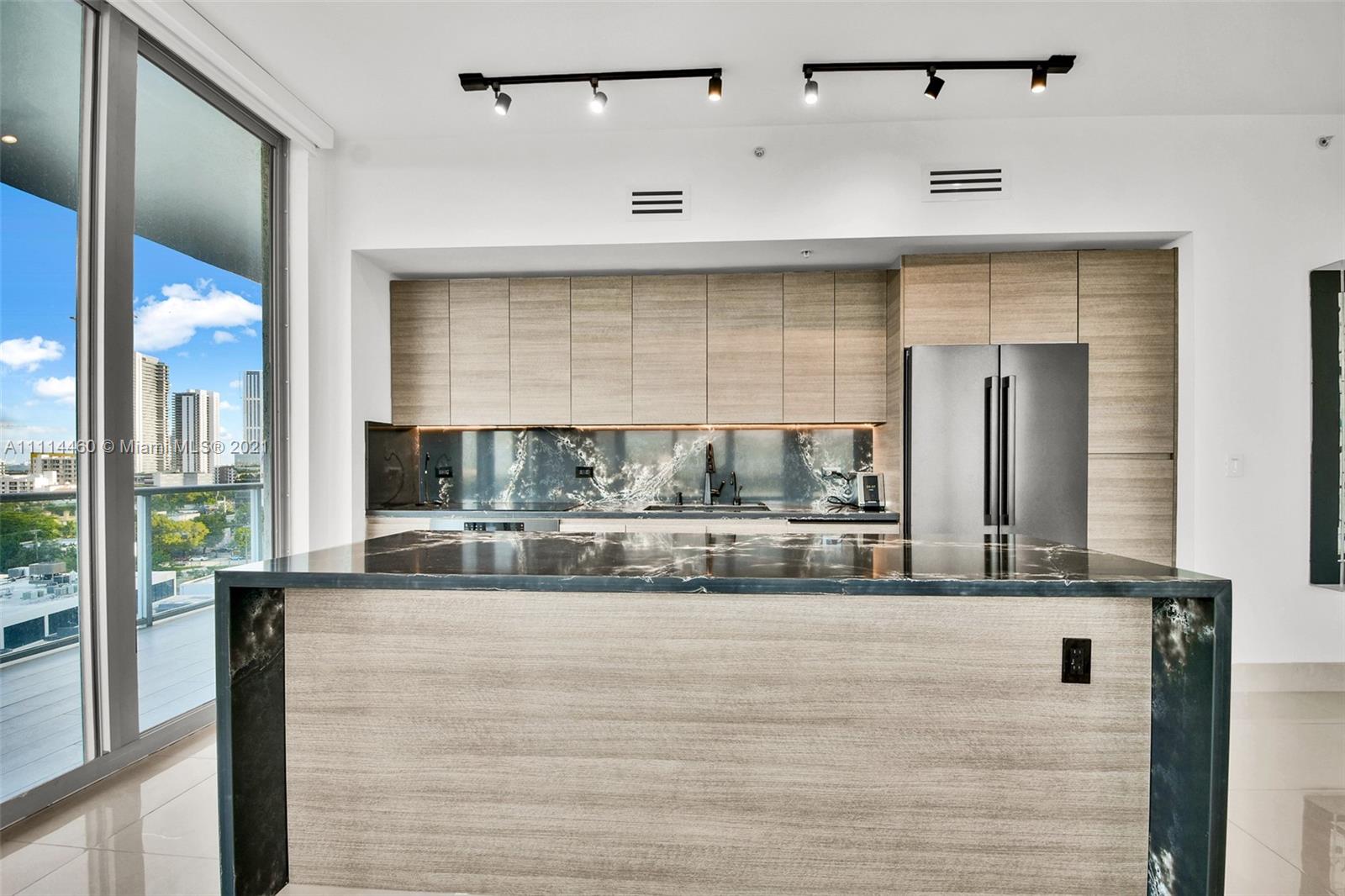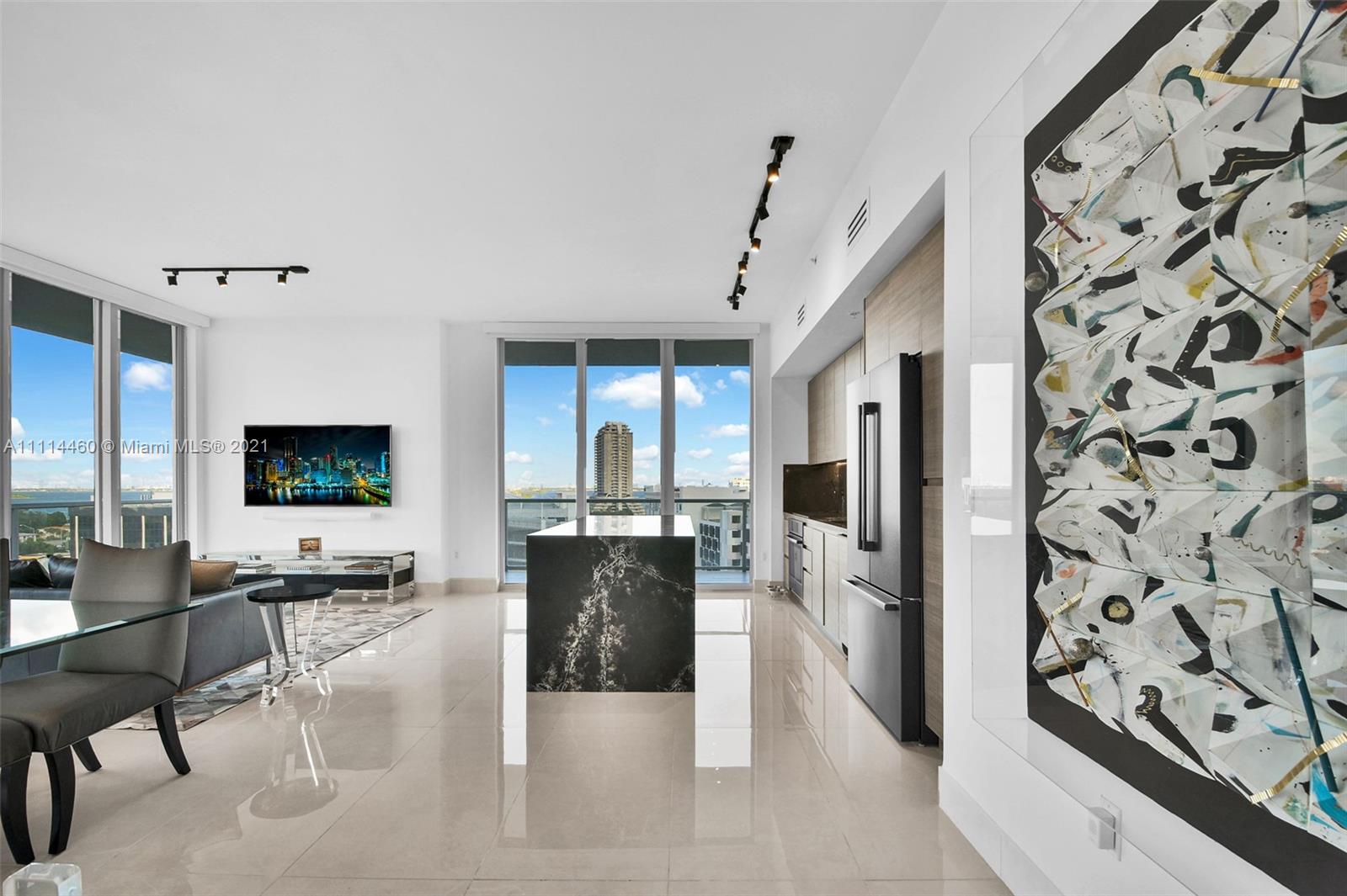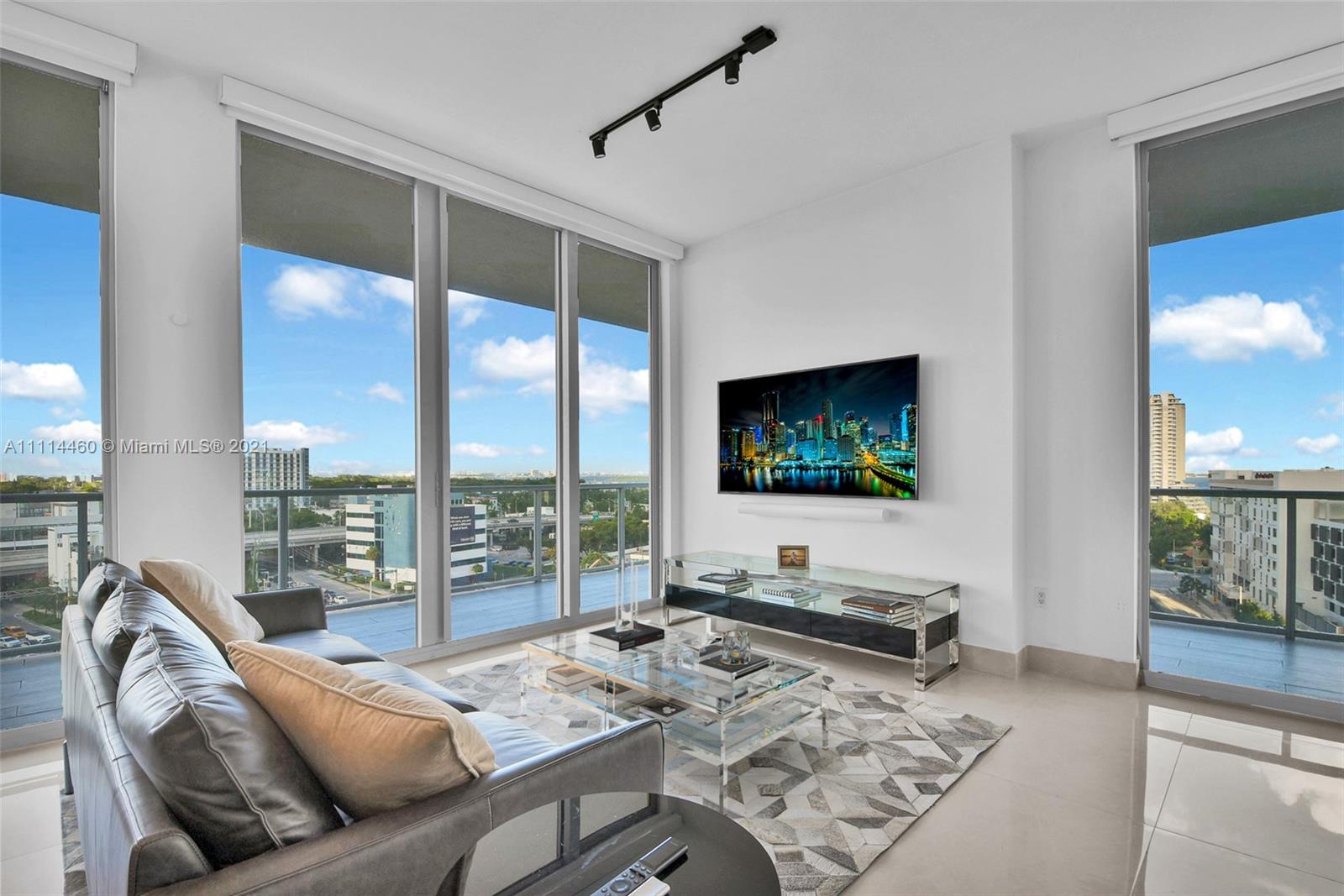 Completely remodeled three-bedroom two and a half bath with close to 1,600 sqft in the prestige 2midtown building. The owners picked only the finest finishes. Brand-new custom kitchen, new bosch appliances, under-cabinet LED lights, imported quartz waterfall island and backsplash. 24X48 Spanish porcelain tile, huge master suite and two large guest bedrooms. Custom closets in all bedrooms and a walk-in closet in the master. New bathrooms, showers and vanities. A smart home system in the entire residence, from the electric blinds, lights sound system and even the showers.Wrap-around balcony with porcelain tile offers city and intercostal views. Amenities include a heated pool, hot tubs, gym, concierge, valet and more. Walk to Parks, restaurants, shopping centers, Design District and Wynwood.