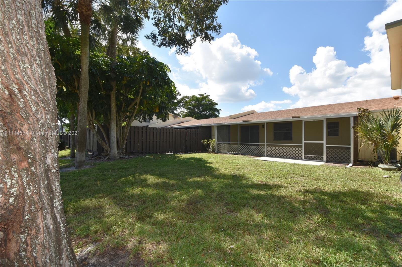 Nicely updated 2/1 villa in Palm Aire Village with huge backyard that can be completely fenced. Brand new high end wood laminate flooring in the main living areas. Newer carpet in the bedrooms. Large screened patio. Full sized laundry room with extra storage area. New water heater. 2 pets allowed up to 45 lbs. Unit can be rented immediately. Roofs in the complex were replaced within the past few years. 2 dedicated parking spots plus guest parking. Centrally located close to shopping, dining, and entertainment.