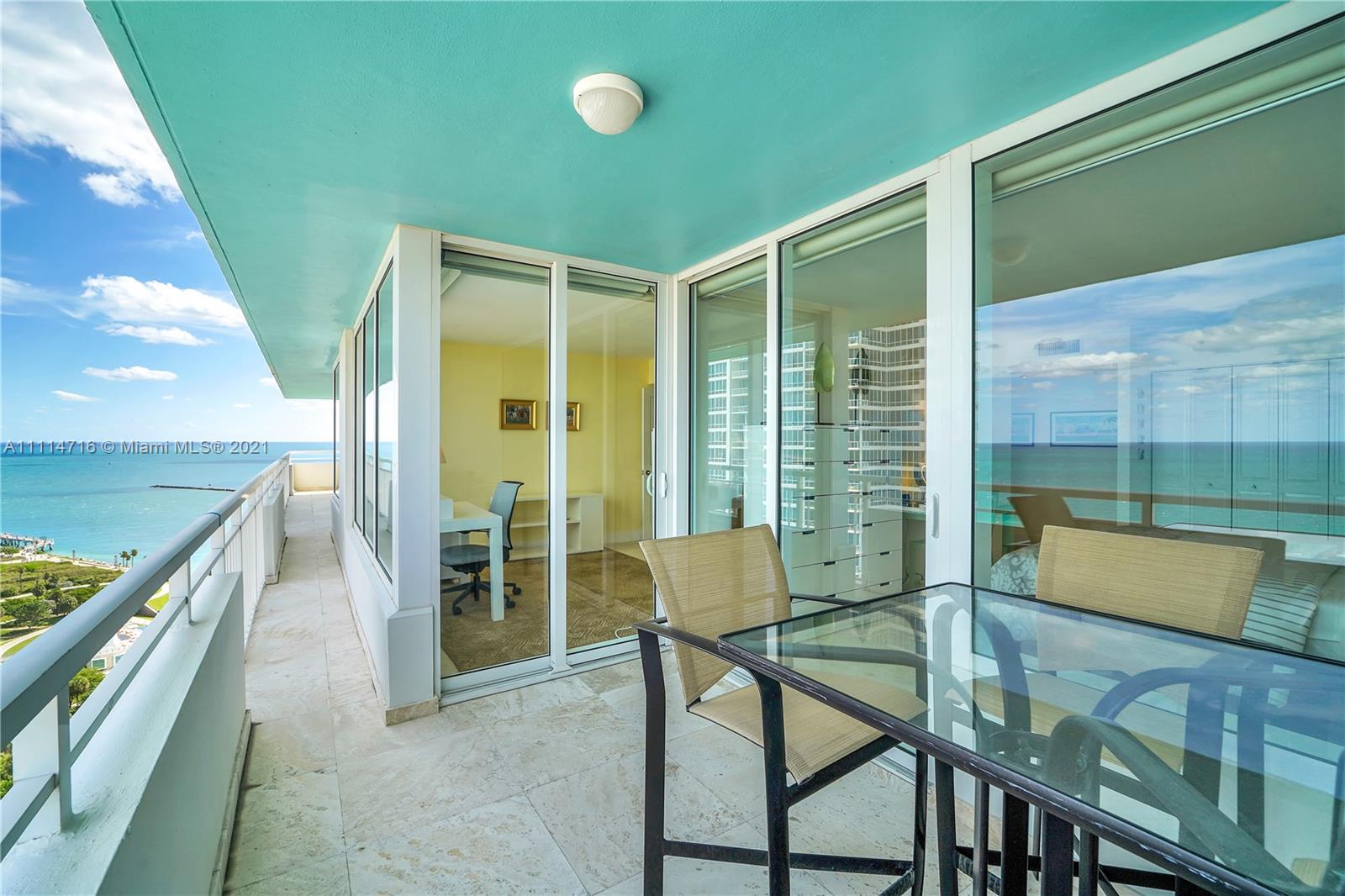 Ocean and Government Cut views from every room! The 04 line is a corner unit and is the largest floor plan in the bldg featuring 3 bedrooms, 3 baths with wrap around balcony. The unit has been renovated including impact windows. Floor plan features master suite with walk in closet and a direct unobstructed view of Govt Cut and ocean. The 2 guest bedrooms have a private balcony with views of ocean and South Beach. The unit is being sold with 2 adjacent parking spots and extra storage. The building features resort style amenities which are in the final stages of renovation including a new gym. All assessments for work underway have been paid in full by Seller. Easy to show.