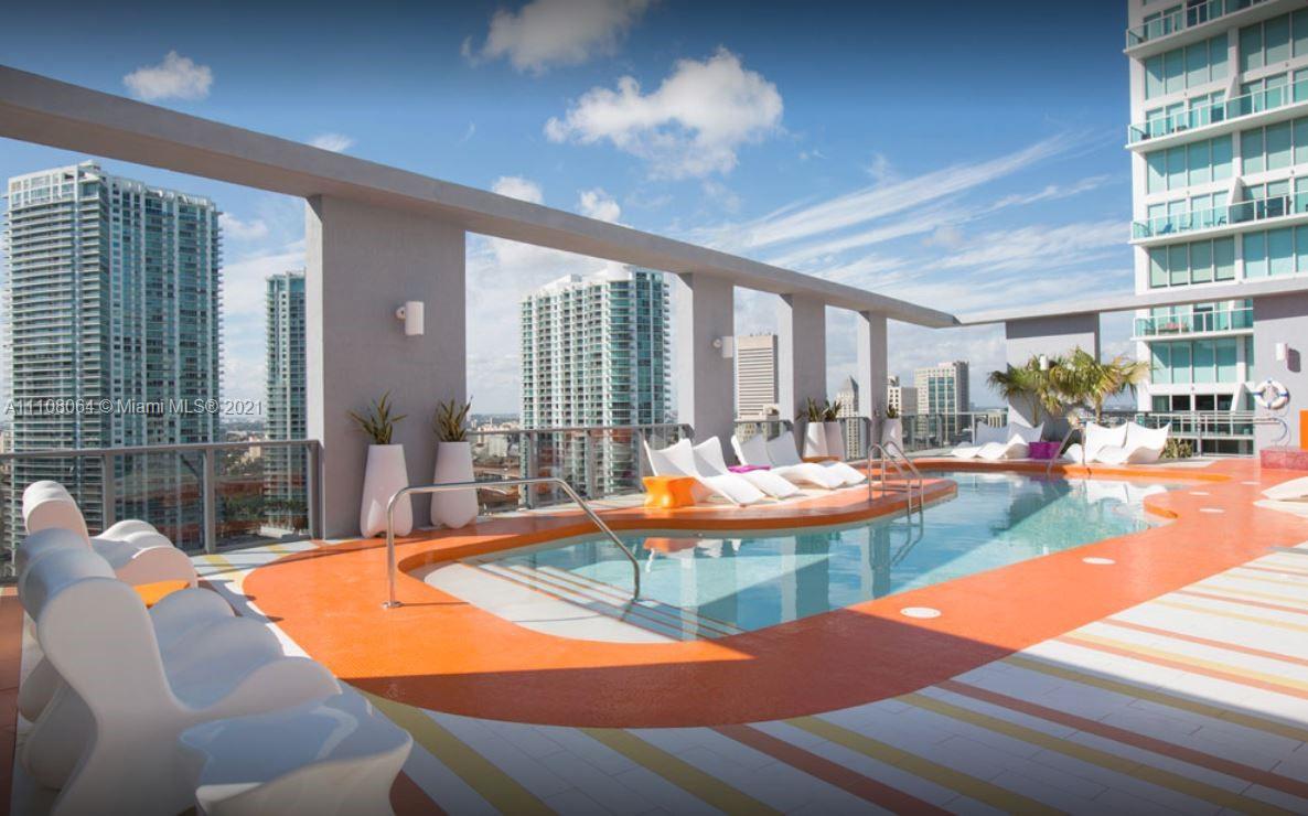 TENANT IS OUT OF TOWN. I WILL BE ABLE TO SHOW THE UNIT NEXT WEEK. A 1 1/2 apartment, very spacious and bright in the heart of the Brickell financial district. The building has a modern and fun design. It was designed by Karim Rashid. Amenities include a rooftop pool, fitness center, and event room. Currently rented month to month.