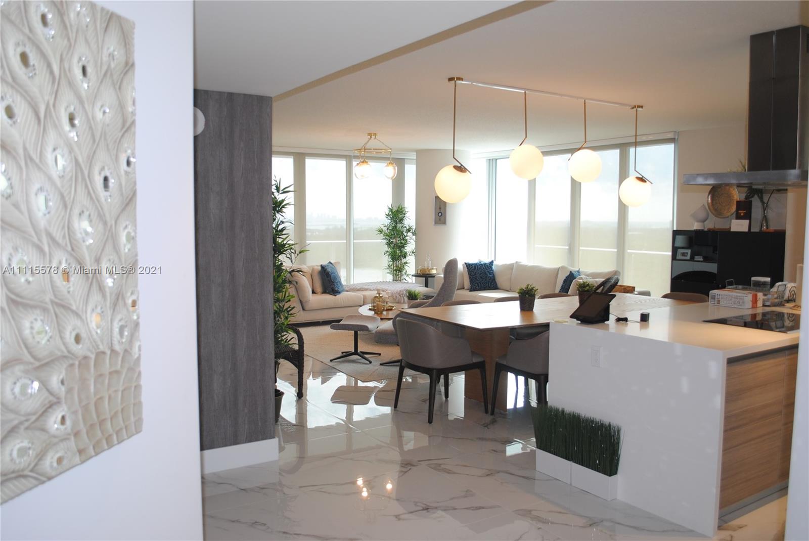 Spectacular 3 Bed/3.5 Bath unit tastefully upgraded / furnished in new building. Corner unit, high floor, large balcony, stunning panoramic views - Intracoastal, Miami Skyline & Ocean. Gourmet kitchen, Bosch & Subzero appliances, Italian cabinets, automated electric blinds. Open floor plan, floor to ceiling impact glass windows and doors, porcelain floors. 5 Stars Amenities - Suite for Guest & Beach Club, Cinema, 4 Pools, Gym, Games Room, Bar, Bistro, Party Room, Playground, Kids Club, 24/7 valet and front desk.