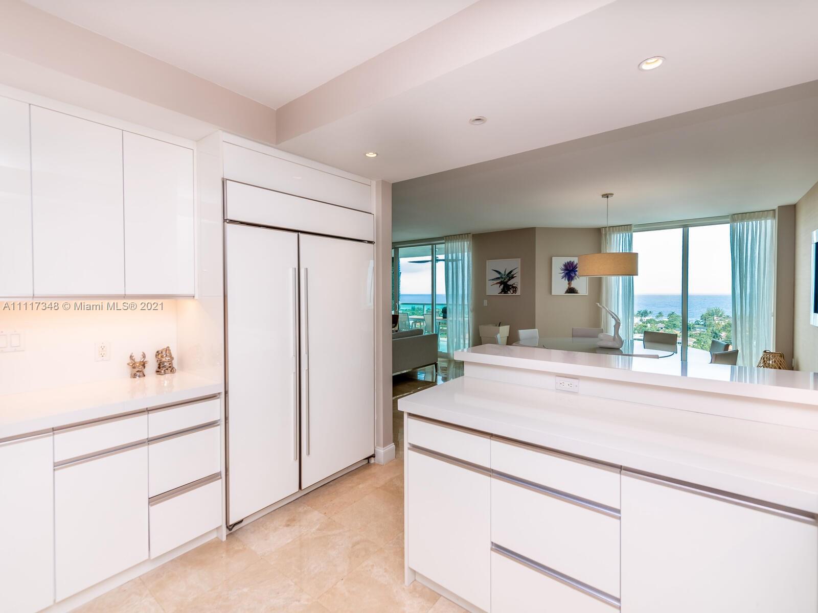 Welcome to this elegant flow thru private residence with over 3200 sqft boasting breathtaking ocean and Intracoastal views featuring 3 BR plus Den, 3.5 baths and private elevator. Custom design unit professionally decorated featuring marble floors, custom millwork throughout, designed wet bar with wine cooler, stylish kitchen with natural light, fresh updates, premium appliances (Subzero, Thermador), two ovens, and quartz counters. Walking through the unit you will find an upgraded powder room, custom designed home theater and an over sized master bedroom with custom walk-in closet, linen closet, and sitting space. It also features its own private balcony facing the golf course. Amenities include infinity pool, movie theater, BBQ area, tennis courts and on site exclusive restaurant.