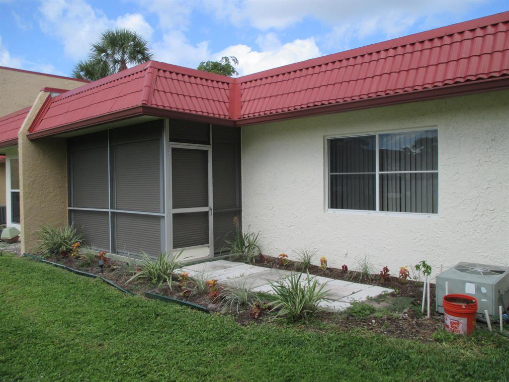 Move in ready end unit Villa in Phase A of Golden Lakes. No carpeting. Screened 13x6 patio with roll down shutters. Updated kitchen cabinets. Custom designed walk-in closet in master BR. Windows have been replaced. Washer/dryer can be added in utility closet but unit is close to Laundry facility Bldg. Ideal N/S exposure. Active 55+ guard gated community with lots of social activities. 24/7 guard gated. Courtesy Bus 2 days a week to grocery, shops, malls etc.