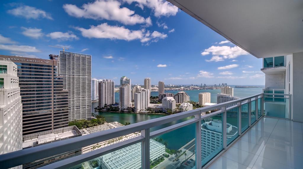 Desirable North-East view from a high floor, bright & spacious 2-Bedroom/2-Bathroom condo with panoramic bay views. European-style kitchen with granite countertops, backsplash, pantry & plenty of cabinetry, and stainless steel appliances, white glass and marble flooring, ample walk-in closets and oversized master bathroom with dual sinks, freestanding tub and a separate shower. Amenities include, movie theater, business center, fitness center, pool & spa, security, and 24/7 valet parking. Close to Mary Brickell Village and Brickell City Centre. Truly one of the best locations in Brickell!