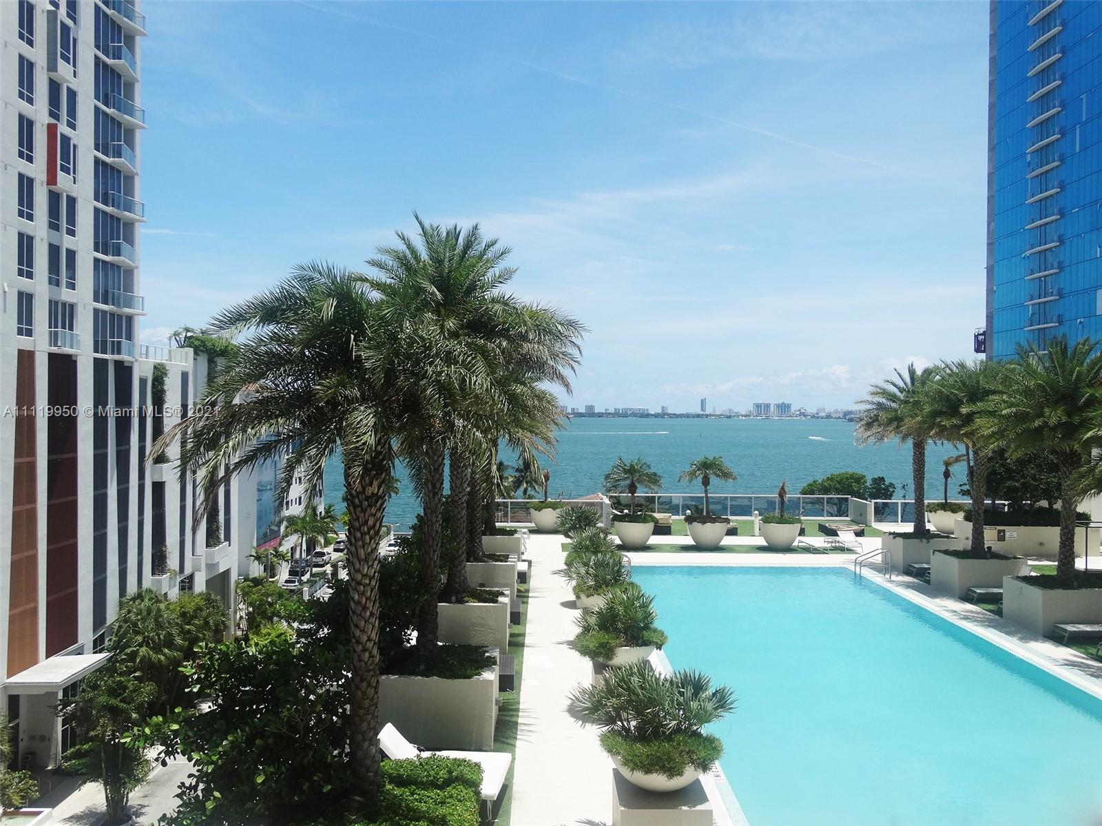 Amazing corner unit with large wraparound balcony with bay and pool views. Enjoy stunning sunrises and sunsets also from the private Master Bed balcony.T he expansive 3B/2.5B floor plan features large ceramic tiles, floor-to-ceiling windows, contemporary kitchen with high-end appliances & Italian cabinetry, elegant bathrooms, built in closets, high speed internet, cable TV. Bay House Miami is located in Edgewater, close to major highways and 10 to 15 minutes to Brickell, Downtown, Miami Beach, Airport, Brickell, Wynwood, Midtown, Design District, American Airlines Arena, theaters, museums, hospitals, shops and restaurants. It boasts exceptional amenities including a resort-style swimming pool, club room, kid’s play room, business center, and state-of-the-art fully-equipped fitness center.