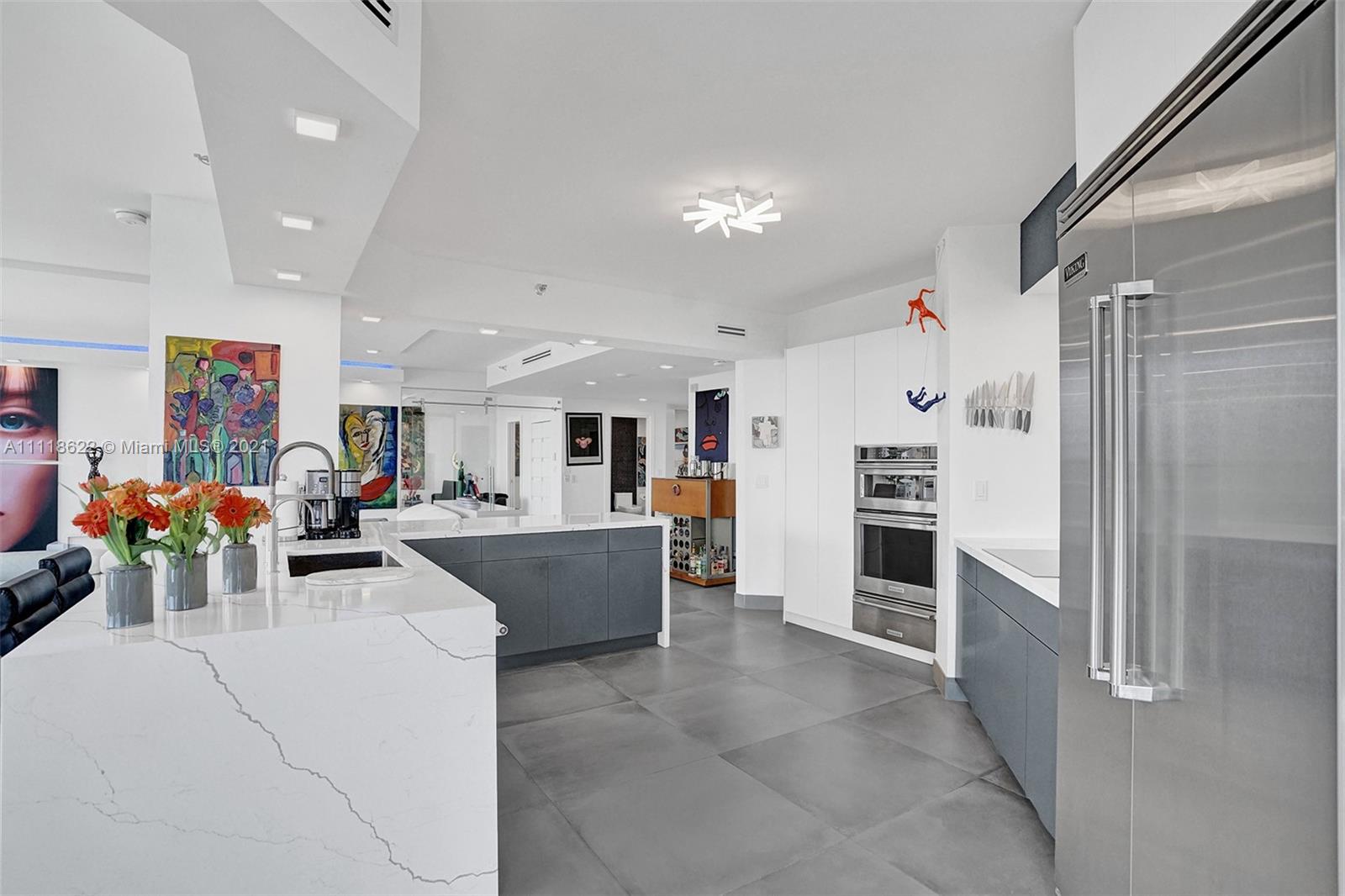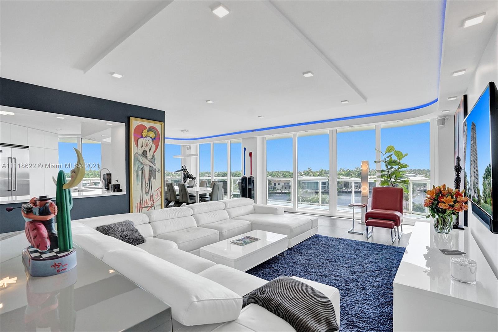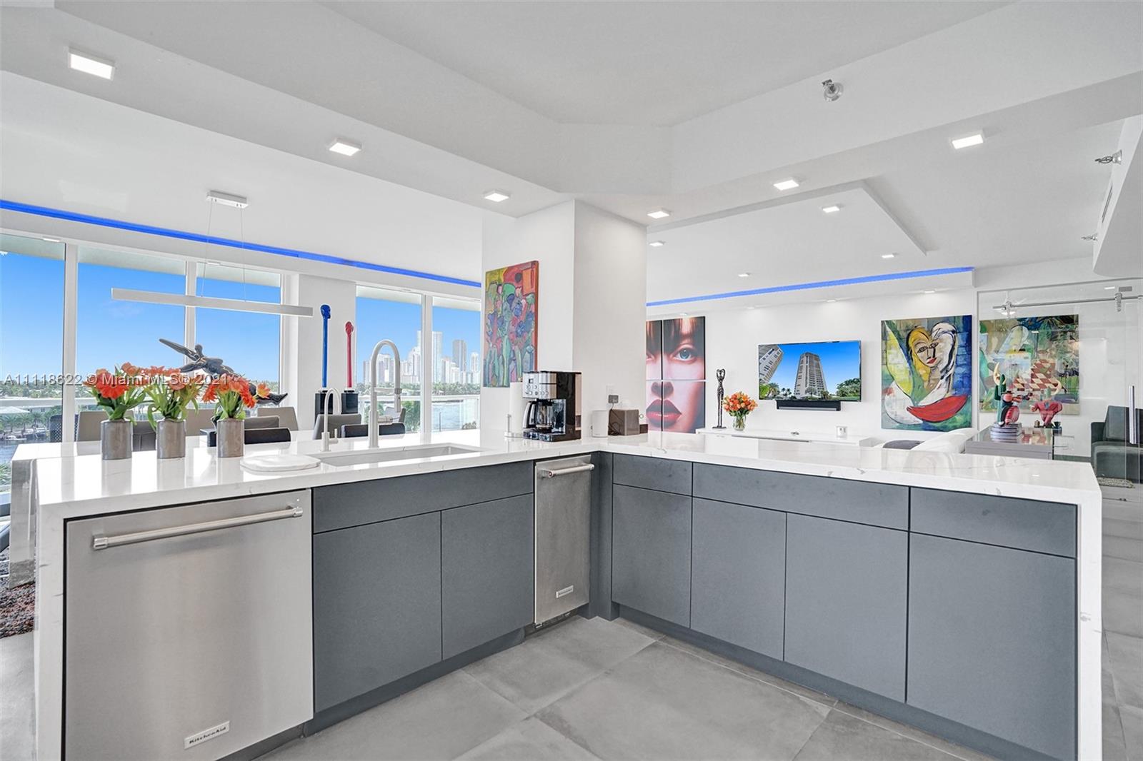 This impressive contemporary residence surrounded by Awe-inspiring water views. Fully remodeled unit with incredible outdoor space accessible from every room. Features porcelain tiles and recessed lighting throughout. LED colored lighting surround in main room. Electric shades. A stylish kitchen that flows through to the dining room. Stainless steel Viking refrigerator & Kitchen Aid appliances, Reverse Osmosis water filter, white & grey cabinets, quartz counter tops & back splash. 3 bedrooms, 2.5 luxurious baths. Master bedroom with walk-in robe & ensuite, modern free standing oval bathtub, separate glass shower with elegant porcelain tile. Extraordinary Smart home/electronics features. One Island Place, a luxury gated resort style community that has direct access to the Waterways Marina.