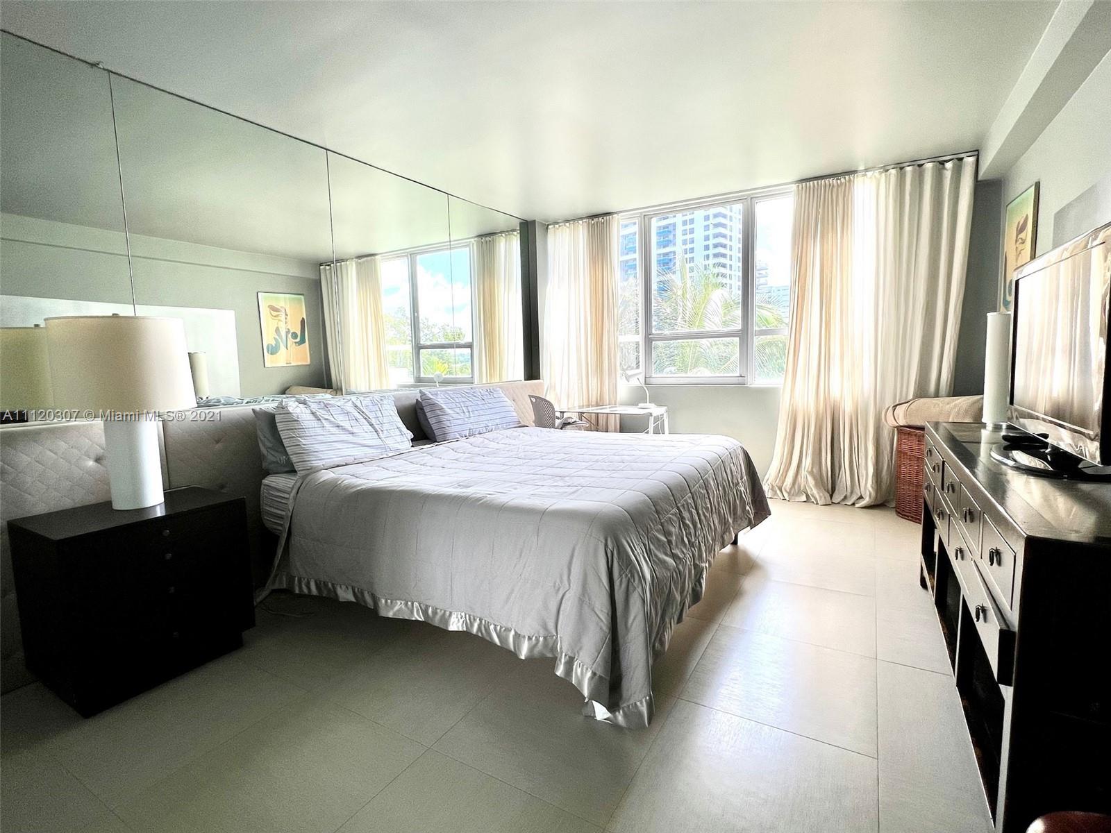 Renovated 1 bedroom 1 bath with direct bay views. Perfect for monthly rentals, 30 day minimum, 12 times a year. Income property or live and work from home. Walking distance to Lincoln Road shops, restaurants, beach and more. The building offers 24 hr security, State of the art gym, convenient store, restaurants and bar with pool service, doggy park, cleaners, valet parking AND this unit has parking space included, covered underground. Best views from this centrally located condo, great for investors. A tenant is place already, but can live with a 60 day notice. A must see!
