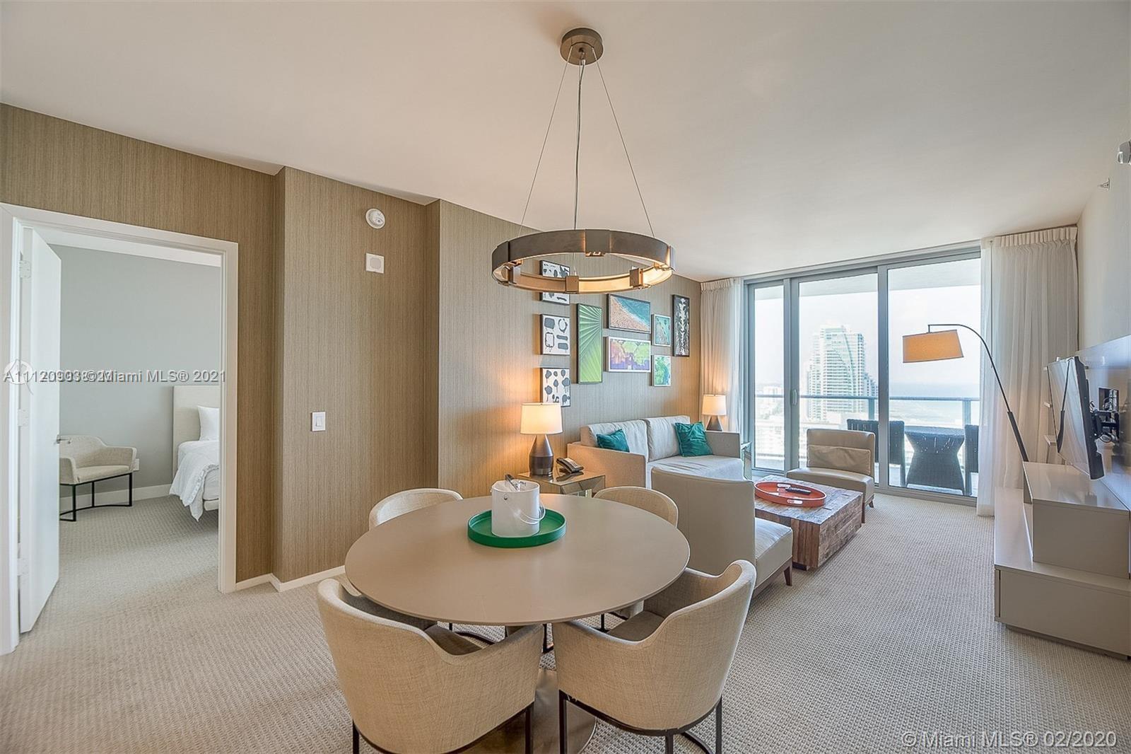EXCELLENT RENTAL INVESTMENT WITH NO RENTAL RESTRICTIONS SHORT TERM & AIRBNB RENTAL'S APPROVED! Direct & unobstructed Ocean/Intracoastal Views from this 2B/2B Residence unit at Hyde Resort & Residences. Professional decorated fully furnished, high quality finishes, porcelain floors, Quartz countertop, motorized roller shades and black-out, Lutron lighting system, safe-box, Sonos system, Nest thermostat and Nest-Yale entrance lock. Large OCEAN FRONT balcony w comfortable outdoor furniture to enjoy the stunning views. Beach Club Membership included w/ full beach service and restaurant. Enjoy 5 Star Resort Amenities: fitness center, 2 infinity edge ocean view pools, private cabanas, full service premier eco Emena Spa and prized restaurants, 24 room service. 2020 AAA four diamond award.