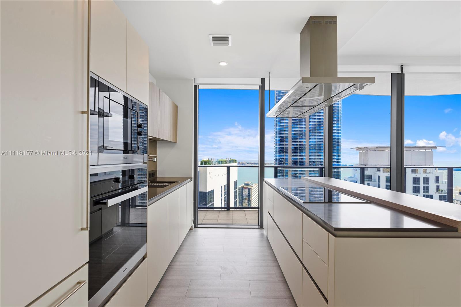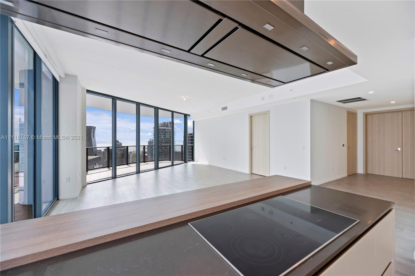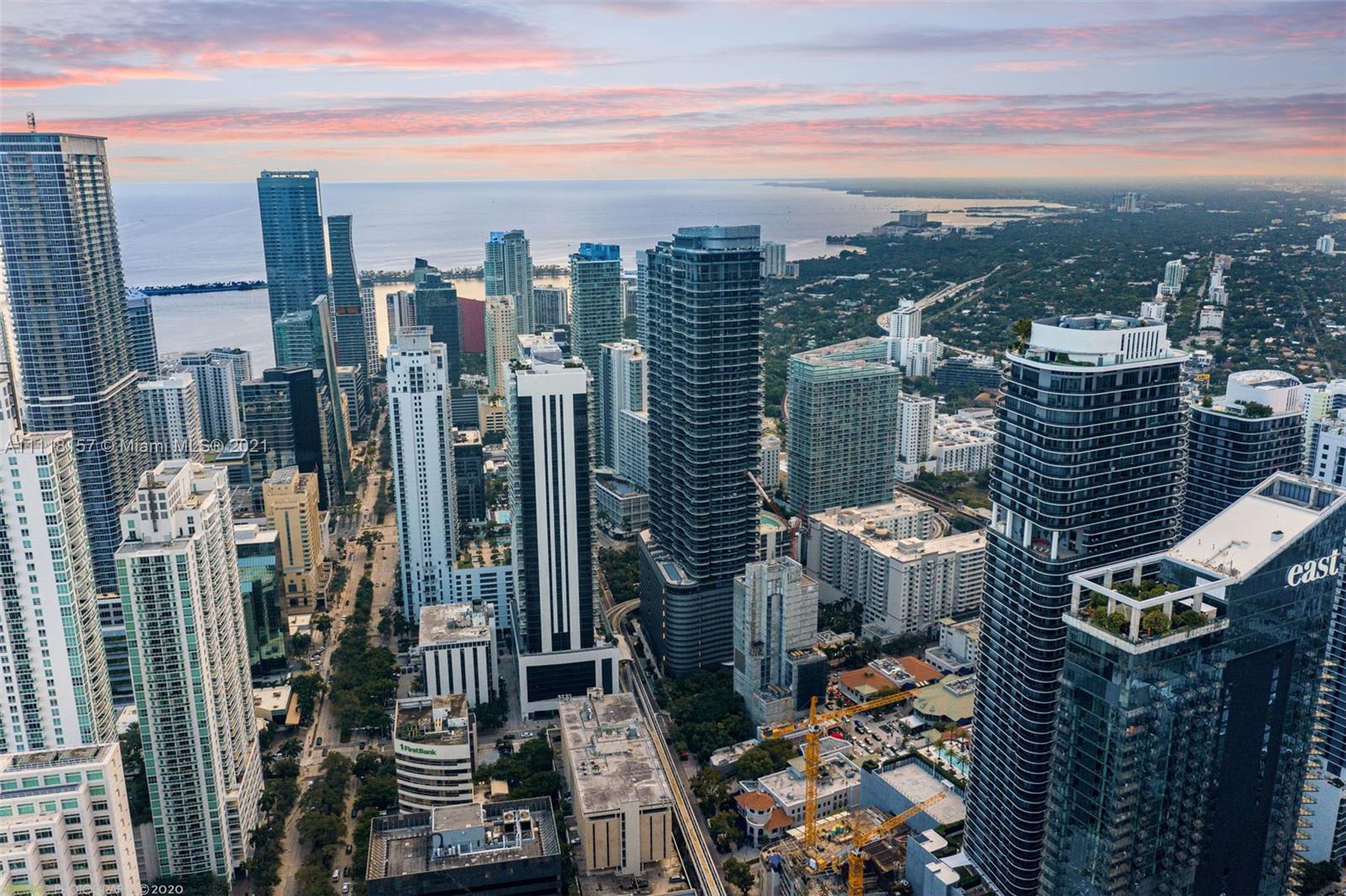 Brickell Flatiron Penthouse. Unobstructed panoramic views with SE Exposure [Best line] Corner unit with wrap around balconies throughout. 3 Beds- 3.5 Baths with 1,955 SQFT of living area, 10 ft. ceilings, floor to ceiling impact windows and sliding doors, Italian Snaidero Kitchens and Bathrooms, built-out closets, Miele appliances, and other luxury finishes. Full-service building with concierge service and resort style amenities includes the 64th Floor Sky Club, a spa, gym, theater, and lap pool, club room, lounge room, movie theater & Billiards. Two assigned parking space and valet service. Fantastic location in the heart of Brickell. Vacant turn-key unit easy to show.