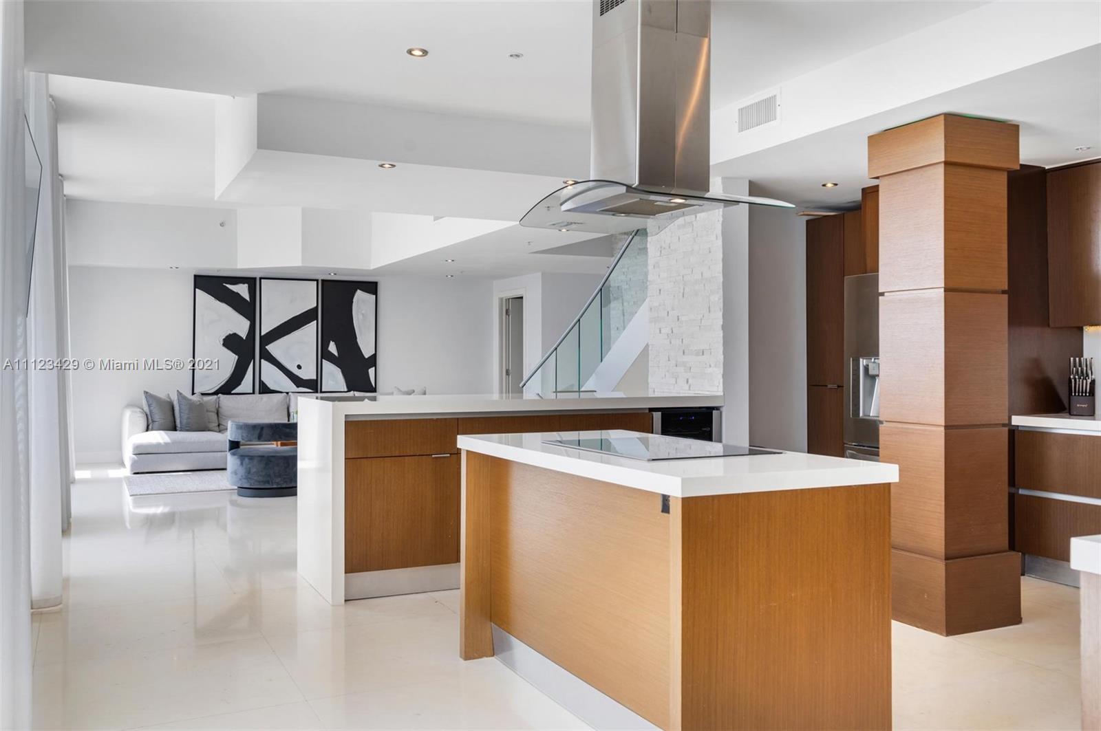 PH4907 at Vizcayne boasts 3,020 sq ft under AC over 3 levels of living, including a PRIVATE ROOFTOP overlooking the Bay & South Beach & 2 additional levels of terrace space. PH4907 is a turn-key, freshly furnished & painted masterpiece in the epicenter of everything Downtown Miami has to offer. On entry level, residents are greeted by a double-door entryway and 10 FT ceilings, accompanied by formal living area, large, open kitchen, formal dining room, laundry room, and a full bath + powder room. 2nd level is encompassed by the primary suite w/over-sized closet, 2nd suite with en-suite bath, a 3rd full bath + den. 3rd FL has private rooftop, full bath, and large open area. Vizcayne has 4 pools, fitness center, spa w/sauna & steam, running track, & doorman. 3 ASSIGNED PARKING + storage.