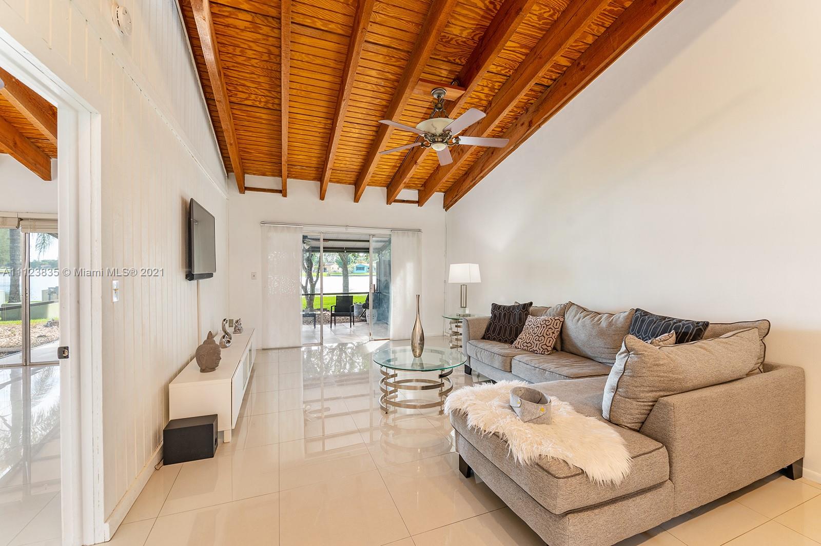 Come see this absolutely beautiful 2 bedroom 2 bathroom remodeled villa with the most stunning views centered on the lake. The vertical shiplap walls compliment the wood planked and vaulted ceiling, creating a natural atmosphere to the home. This villa contains porcelain tile throughout the home, and an updated kitchen and bathroom. The master bedroom and living room both open up to the oversized patio so the majority of the home has scenic views of the lake. The back of the villa features and oversized patio and a side yard which contains plenty of room for landscaping and a shed. New fencing was installed to create a space of peace and privacy while enjoying the views. There are two driveway spots located in front of unit, guest parking, and a low HOA fee. Villa is hurricane protected.