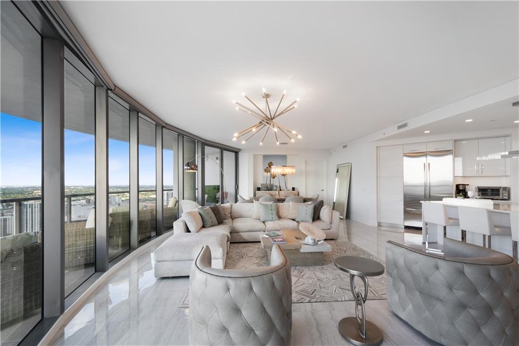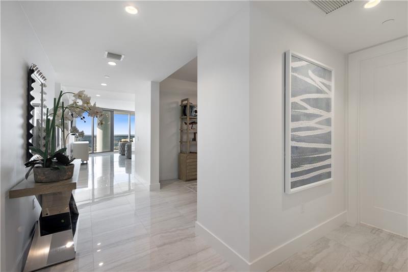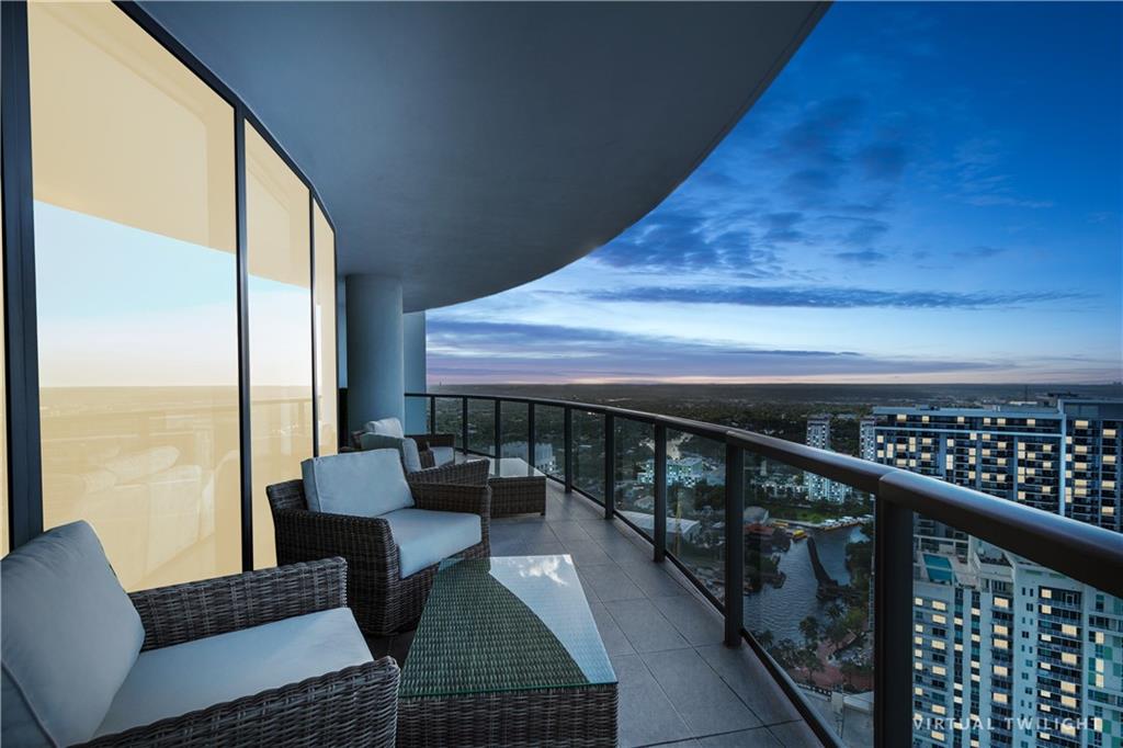 Incredible residence located on Las Olas Blvd, in Fort Lauderdale’s newest luxury Highrise, 100 Las Olas. This stunning 3 bedroom condo with a Den and 3 ½ baths has it all. Amazing views stretching from the River to the Ocean, soaring high above the city on the 40th floor with floor to ceiling windows throughout. Motorized black out shades in bedrooms, and motorized shades for living room and dining room windows. Beautiful gourmet kitchen with high end appliances & finishes. Wet bar with wine cooler and tile floors throughout. Walk in laundry with W/D and upgraded lighting and electronics. Unit is fully furnished and has 3 parking spaces. Building has separate amenities from the Hyatt, and 24 hour security.