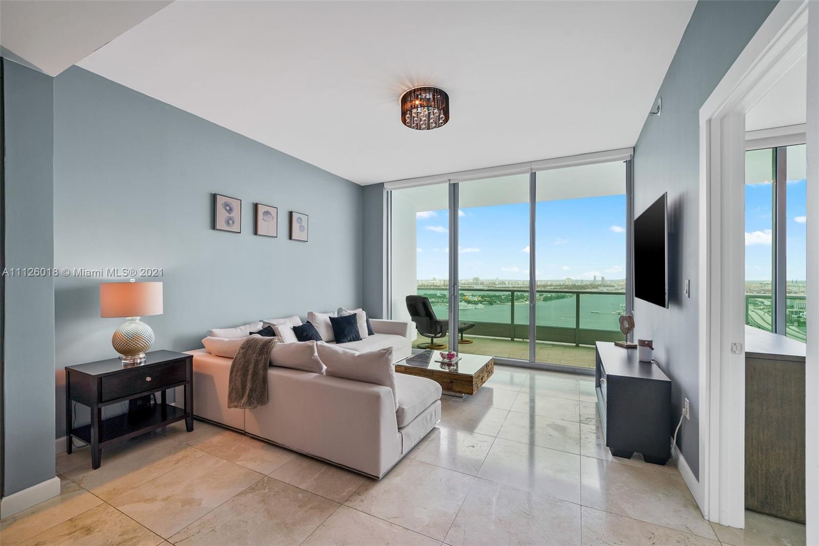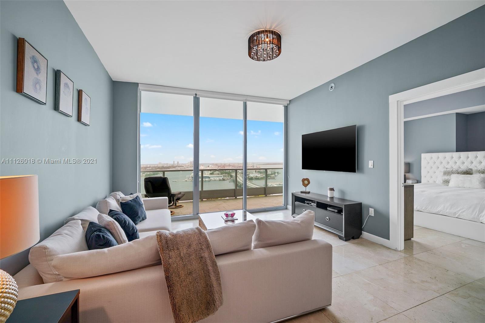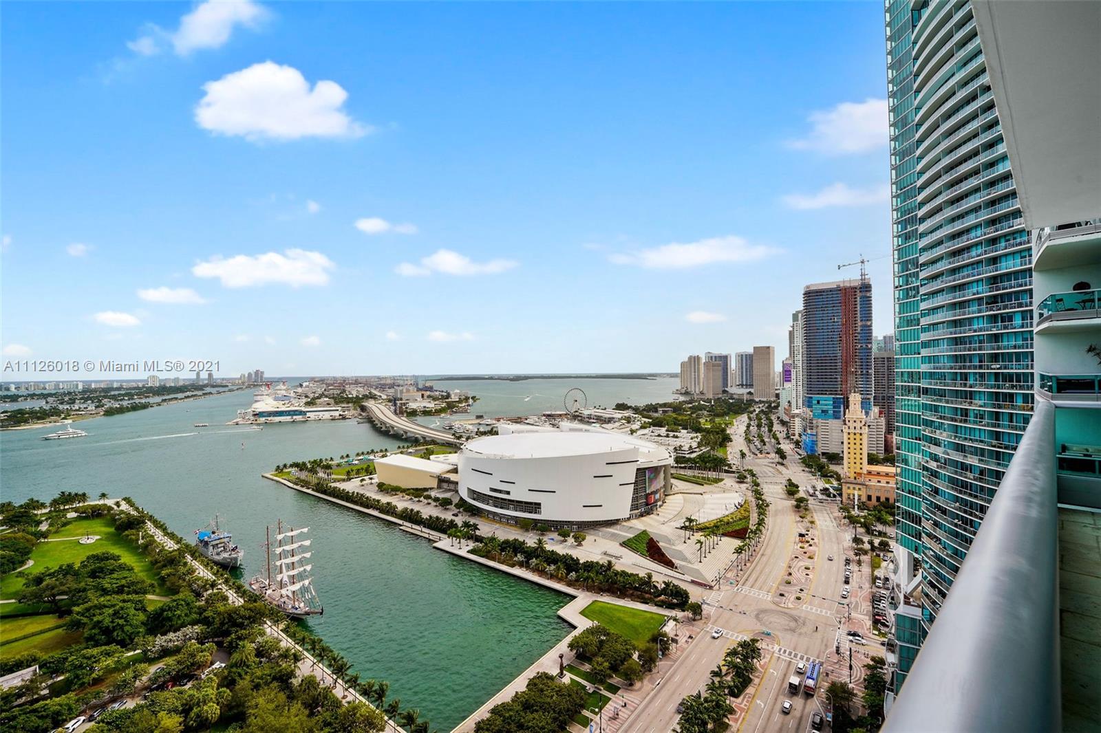 Miami condo in exclusive 900 Biscayne; currently rented; 1 BR plus a Den & 2 Full Bathrooms; Full Amenities with outstanding views from 32nd Floor of East Water Bay/Ocean Views. Perfect home to live or rent. Port Of Miami, Miami Beach, American Airlines Center and Perez & Children Museums; Next to 1000 Museum & PARAMOUNT World Center.
