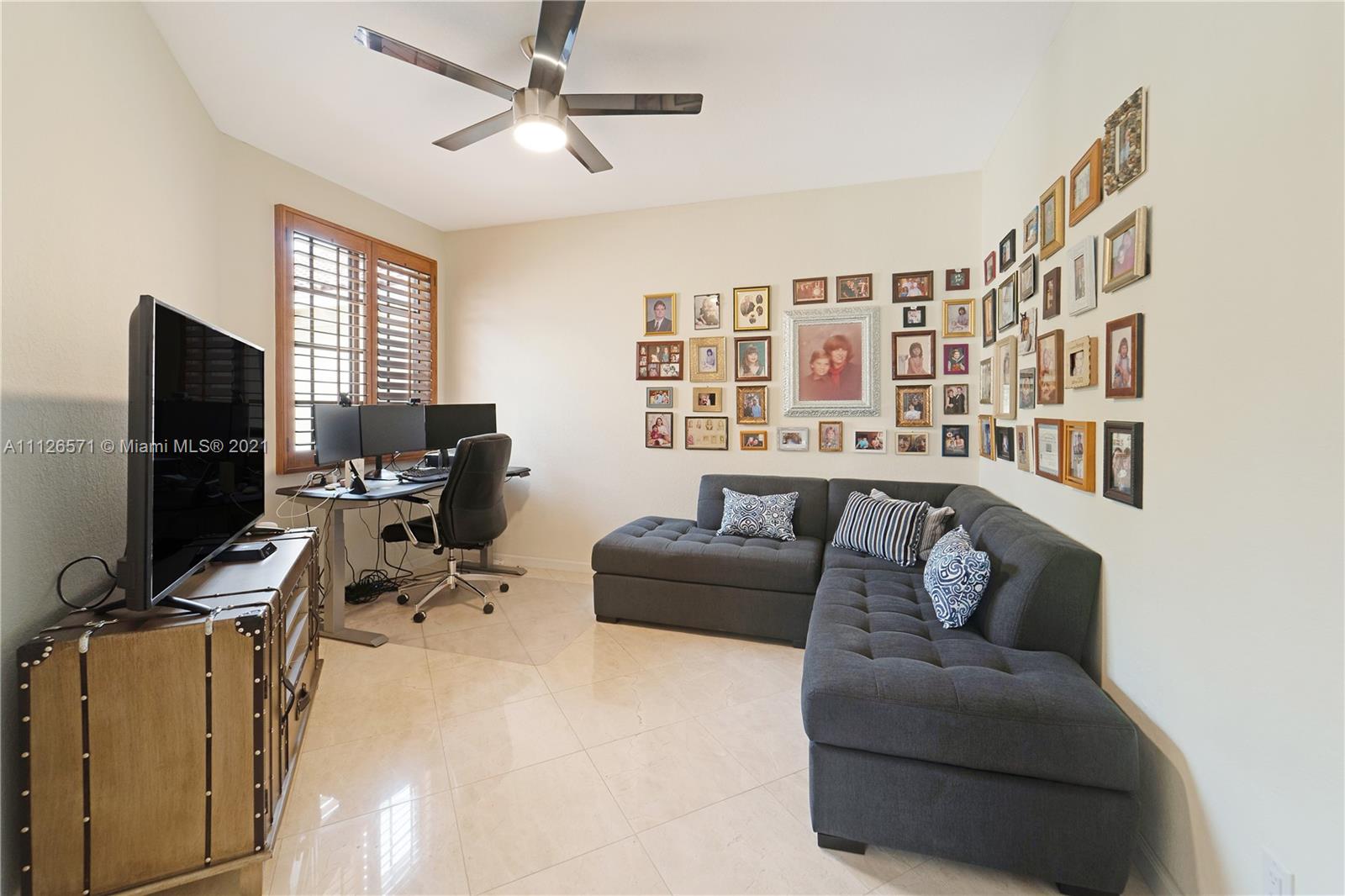 Rarely available 3 bedroom, 2.5 baths with an office/den and elevator in Mariposa Pointe. Upgrades include 3 updated bathrooms with modern finishes, upgraded kitchen with wood 42” soft-close cabinets, granite countertops, luxury appliances including beverage cooler, marble floors throughout common areas and master bedroom, laminate in other bedrooms, plantation shutters, new elevator motor and new AC. Located in the heart of Weston, walking distance to the Weston Town Center (restaurants, offices, banks, grocery store and urgent care center). A+ schools K-12. Enjoy easy living with an association that covers roof/paint and landscaping.