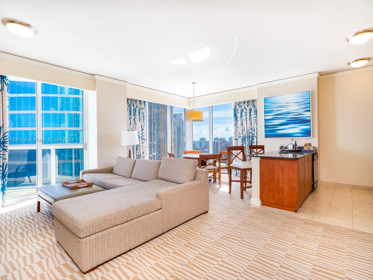 WELCOME TO PARADISE EXCLUSIVELY LOCATED AT THE LUXURIOUS TRUMP INTERNATIONAL BEACH RESORT. THIS ONE BEDROOM UNIT HAS BREATHTAKING VIEWS OF THE INTRACOASTAL AND OCEAN THAT YOU CAN ENJOY FROM FLOOR TO CELING WINDOWS AND YOUR BALCONY. UNIT COMES FULLY FURNISHED WITH COMPLETE KITCHEN & APPLIANCES. ALSO, THIS UNIT HAS A LOCKABLE OWNER CLOSED AND WASHER DRYER. CURRENTLY IN HOTEL MANAGEMENT PROGRAM WHICH HANDLES ALL RENTALS, BOOKING AND UP-KEEPING MAKING IT EASY TO OWN. AMENITIES INCLUDE GYM, SPA, 3 RESTAURANTS, LOBBY & POOL BAR, POOL/BEACH SIDE FOOD SERVICE, 2 POOLS, CABANAS, PADDLE BOARD/JET SKI RENTALS, TENNIS, BASKETBALL, CHILD CARE, SECURITY, VALET, WALK TO RESTAURANTS/SHOPPING AND HOUSE OF WORSHIP.