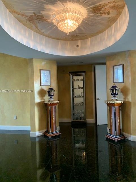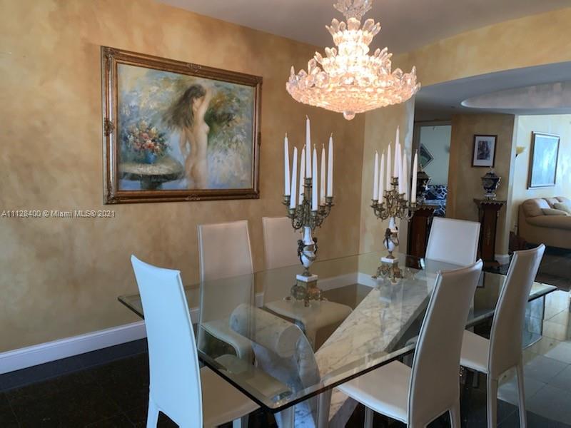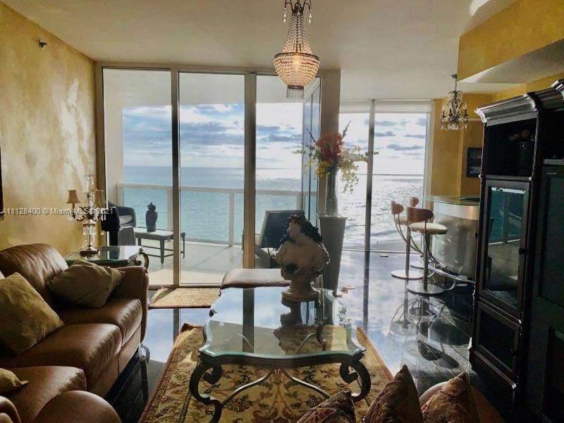 Enjoy stunning ocean & city views from this beautiful 2 bedroom, 2.5 bath in the heart of Sunny Isles Beach. Step off your elevator to your private hand painted foyer. Upon entry your eyes will be drawn to the Italian gorgeous hand painted ceiling. Enjoy your family dinners in the beautiful formal dining room. Eat in euro kitchen has fabulous views of the city, master bedroom has huge walk in closets & bathroom with double sink vanity. Split bedroom floorpan. Minutes from Aventura Mall & Bal Harbour shops. Fabulous amenities including full beach and pool service, bistro bar, tennis courts, party room, rooftop jacuzzi, spa, gym, valet, 24 hour security & more. Unit being sold furnished. Artwork not included. Professional photos coming next week! Parking space A149. Storage space 11c&d