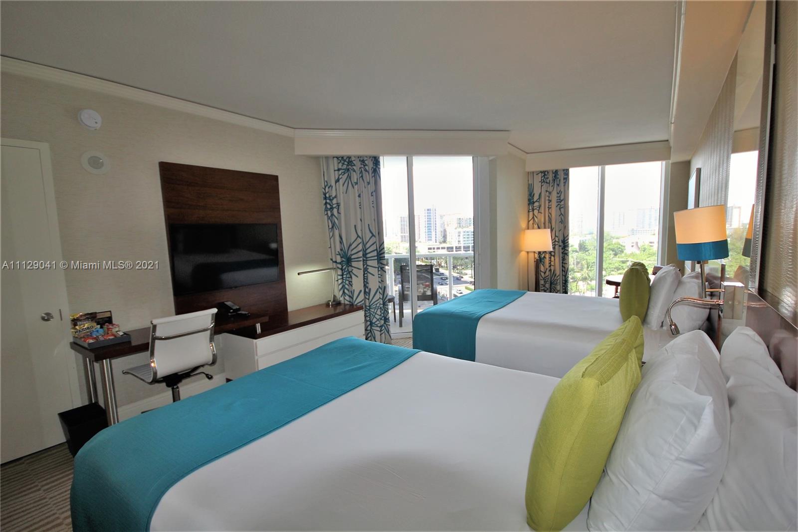 Competitively priced studio suite in this luxurious ocean front condo hotel resort with pool and beach service with chairs, umbrellas, towels, food and drink service and wave runners, 4 restaurants including beach front dining, full service spa, salon, tennis, state of the art fitness center, 2 pools, Kid Planet, child daycare and more. This gorgeous and bright semi corner unit with lots of glass has a gorgeous unobstructed south west view and partial ocean view, is fully furnished and equipped to the hotel standard and is on the hotel program. It features an open balcony, kitchenette with granite counter, dining area, large flat screen TV, and a luxurious bath. Don’t miss out on this amazing opportunity.