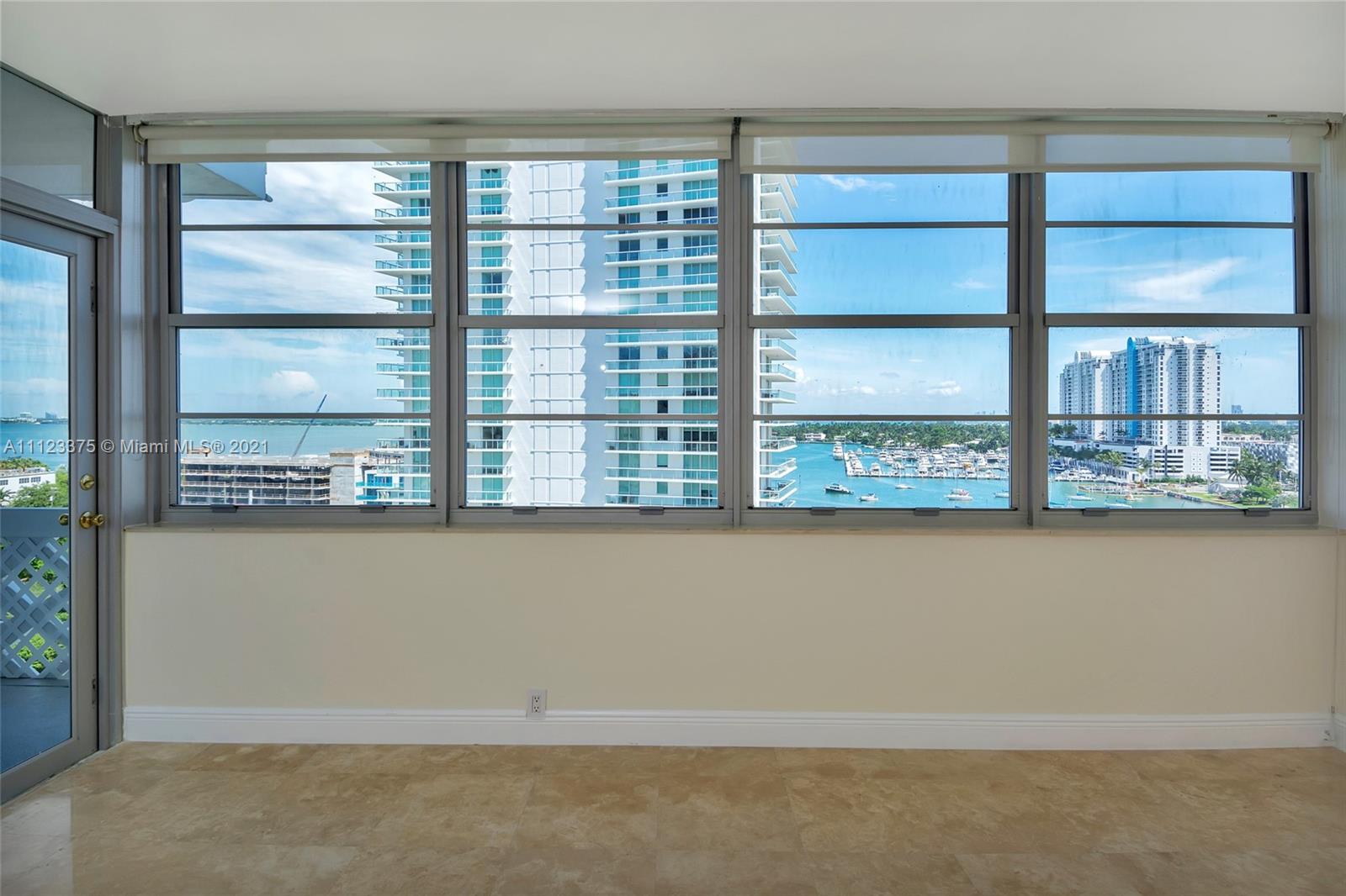 A perfect combination of location (in coveted Miami Beach Belle Isle) and views (Venetian Islands, Bay and Intracoastal) makes this unit highly desirable: 1 bedroom , 1.5 bath with marble floors and granite kitchen countertop, remodeled marble bathrooms, large built-in library in living room, ample closet space. Building has been renovated with new hallways, elegant lobby, 24h doorman, spectacular pool at the edge of the water, BBQ, boat dock, tennis and gym. Valet parking for guests. Very close proximity to Lincoln Road and Sunset Harbor offering shopping, restaurants, entertainment and multiple activities. PLEASE NOTE THAT UNIT IS LEASED UNTIL AUGUST 09, 2022