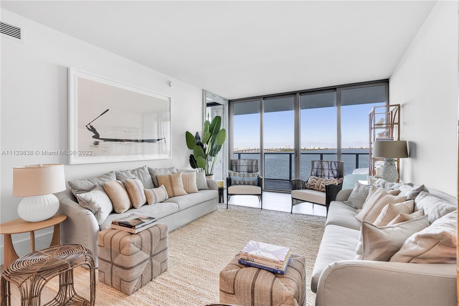 Enjoy the unobstructed view of the Biscayne Bay and the dolphins swimming! 3 bedrooms/3 1/2baths plus den/bedroom/office space. Foyer entrance from a private elevator. Floor to ceiling high impact windows, top of the line appliances, many decorator upgrades done by the owner. 5-star amenities: Olympic pools, state of the art fitness center, spinNing/yoga/spa/sauna/game/party/children's lay rooms, tennis courts, movie theater and business center. 6 units per floor. Maintenance includes water, basic cable and internet. Minutes from Design District/airport/Brickell and Miami Beach. One assigned parking space and valet parking available. Allow 24 notice . ***SOLD PARTIALLY FURNISHED*** CASH OFFERS ONLY.