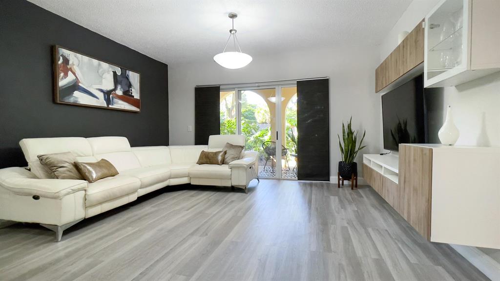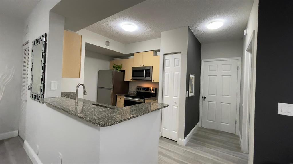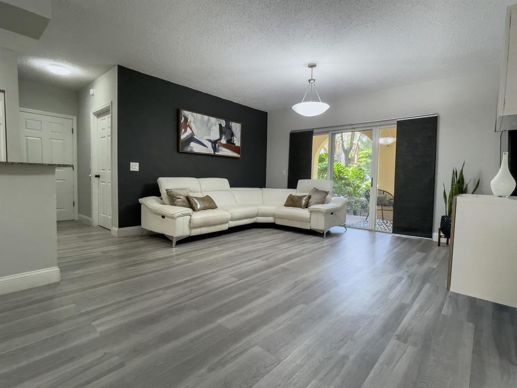 Renovated 1b/1b with attached garage in the desirable Aventine at Miramar community located in the heart of Miramar. Upgraded with water resistant vinyl coastal oak flooring, Samsung kitchen appliances and modern Electrolux washer/dryer and garage has upgraded epoxy flooring. Renovated shower featuring waterfall shower head and large walk in closet. This unit also has large covered patio as well. Community features 2 pools, gym, play ground, tennis courts along with bike and walking trails around a magnificent lake. Close to shopping and easy access to the Turnpike.