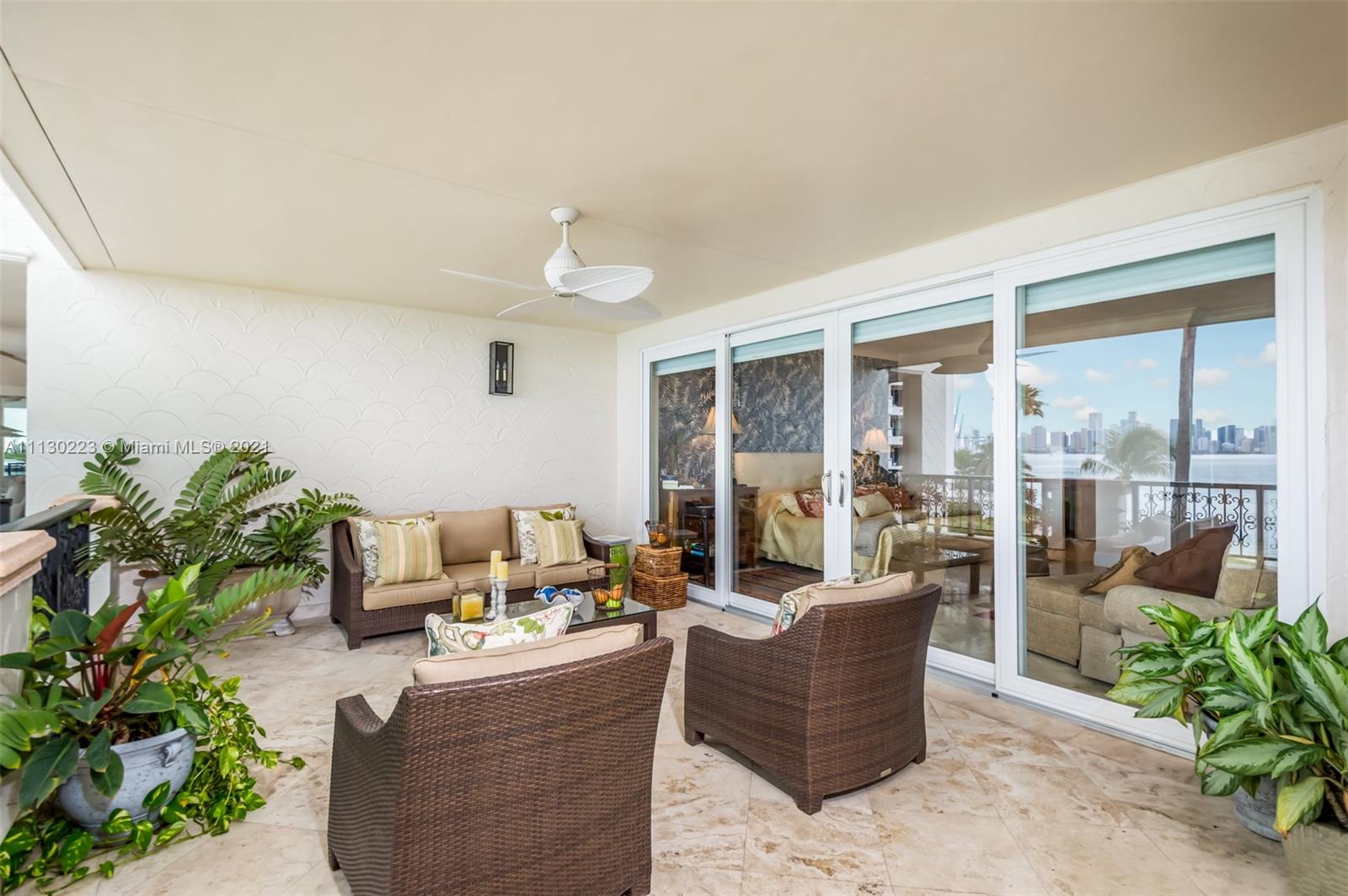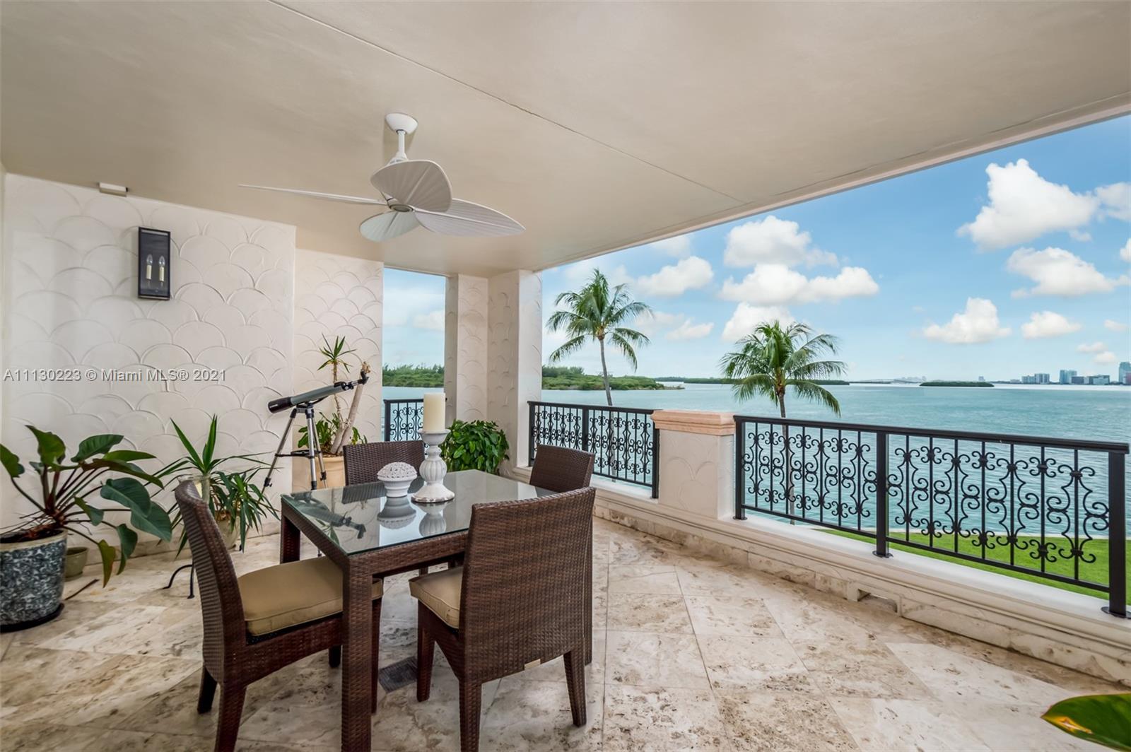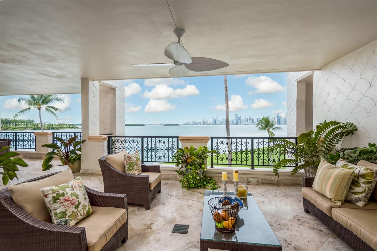 Impeccable and meticulously maintained this 2 bedrooms + Den (converted to a 3rd bedroom) and a 3 full bathrooms, with 1950 sf living area, is offered fully furnished and professionally designed, in the most desirable Fisher Island FULLY renovated Bayview building. Unit has lots of upgrades , including Spanish travertine marble floor, updated kitchen and bathrooms, living room built-in, sophisticated wallpaper, hurricane impact glass windows, 2 assigned parking spaces, extra large and refrigerated storage plus a brand new golf cart. Oversized wrap around terrace with spectacular and unobstructed water and Downtown views .Luxury living at it's best! Easy to show, call listing agents for an appointment and or more information. UNIT MUST BE SOLD WITH EQUITY MEMBERSHIP SIMULTANEOUSLY.