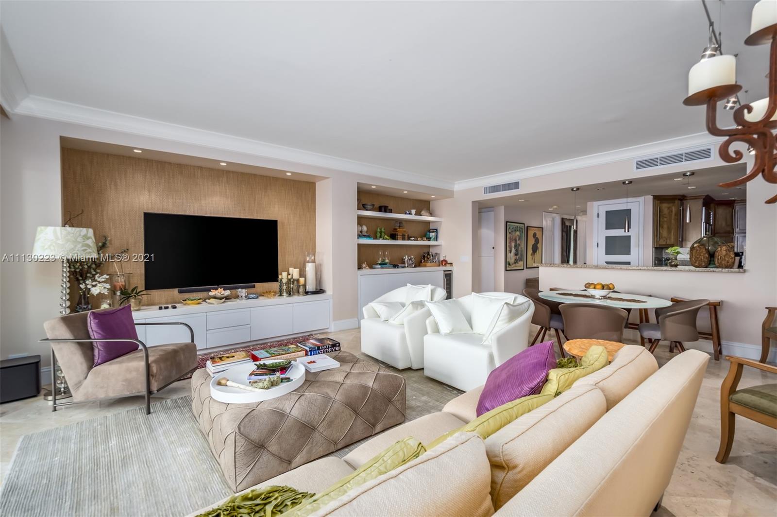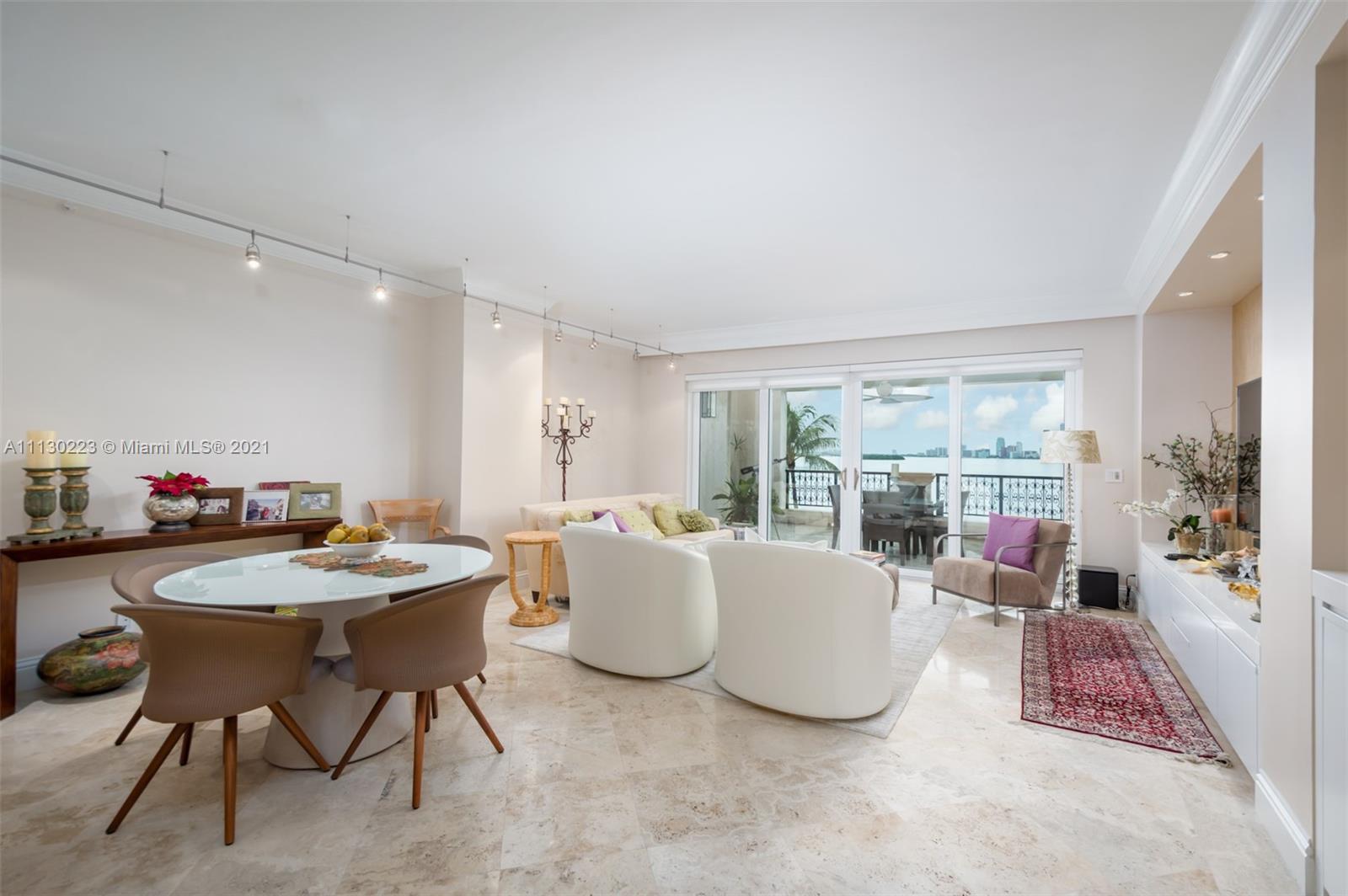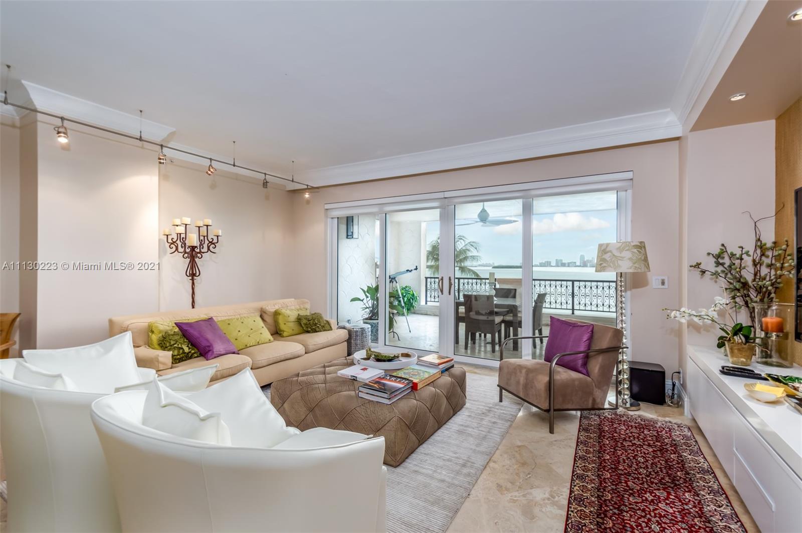 Impeccable and meticulously maintained this 2 bedrooms + Den (converted to a 3rd bedroom) and a 3 full bathrooms, with 1950 sf living area, is offered fully furnished and professionally designed, in the most desirable Fisher Island FULLY renovated Bayview building. Unit has lots of upgrades , including Spanish travertine marble floor, updated kitchen and bathrooms, living room built-in, sophisticated wallpaper, hurricane impact glass windows, 2 assigned parking spaces, extra large and refrigerated storage plus a brand new golf cart. Oversized wrap around terrace with spectacular and unobstructed water and Downtown views .Luxury living at it's best! Easy to show, call listing agents for an appointment and or more information. UNIT MUST BE SOLD WITH EQUITY MEMBERSHIP SIMULTANEOUSLY.