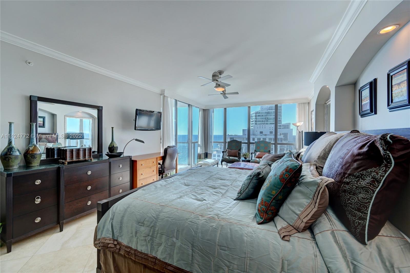 Bring your fussiest buyer to this newly refurbished sky home. A large flow thru unit (only 10 of these units in entire building) Private vestibule entry. New kitchen cabinetry, new porcelain kitchen countertops, new paint, new lighting fixtures. Both Southeast and Northeast ocean views. Marble flooring throughout. Many 5 star building amenities including beach and pool towel service, valet, tennis court, 2 story fitness center overlooking pool and ocean, on site management, clubroom, business center, media room, billiard room, BBQ area, sauna, heated pool and hot tub, dog run, more.