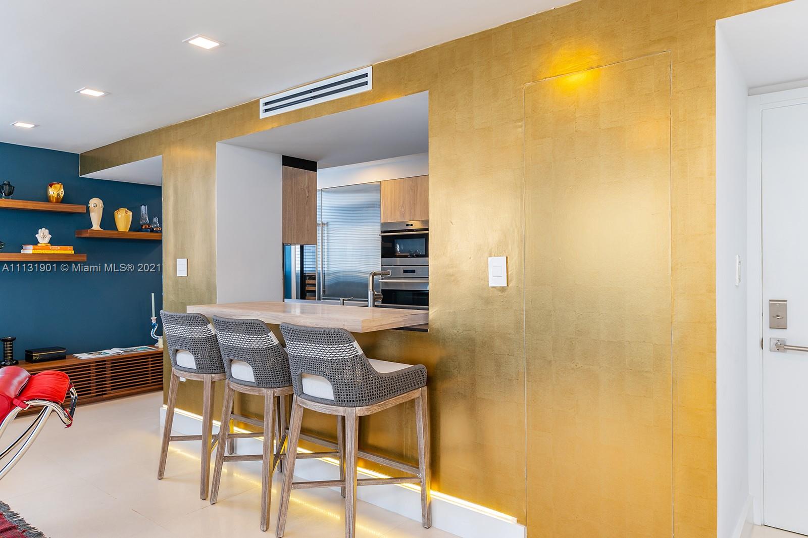 One of a kind 1 bedroom 1 bathroom completely renovated from the studs. This unit features updated lighting fixtures, bathroom marble, a custom Italian MiaCucina kitchen with Subzero and Wolf appliances including a wine fridge. Gold leaf accent wall adds a stylish touch to the living space. New electric, pipes and plumbing. Bay views can be seen from balcony and kitchen. Bosch washer/dryer in unit. Owner spared no expense in making this unit a state of the art oasis right on the bay. Access Sunset Harbor shops and restaurants, Lincoln Road, Trader Joes, Whole Foods, South Point, the beach and much more in minutes.