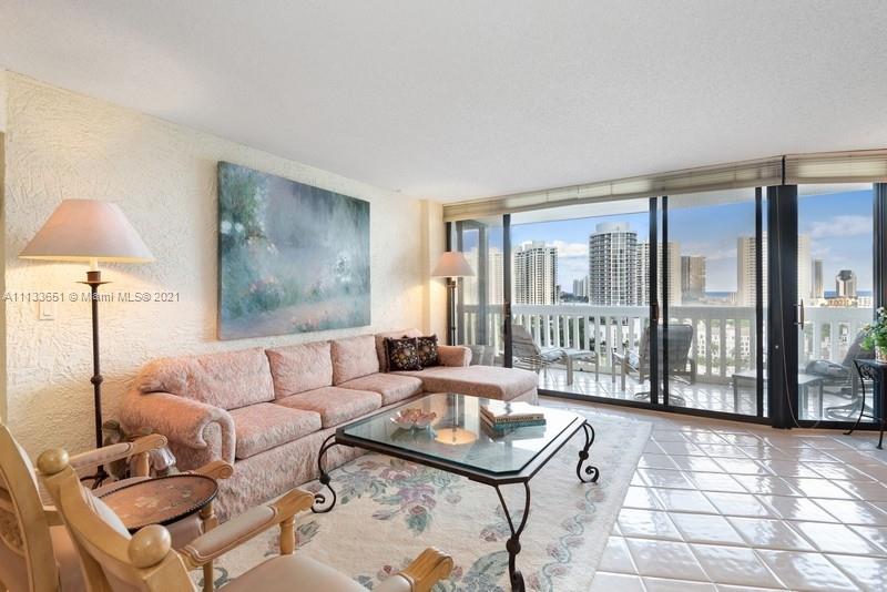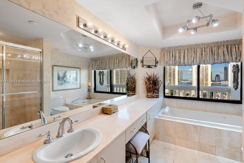 Enjoy panoramic, East views from this impeccable, 1230sf 2/2 currently set up as a 1 bedroom convertible in desirable Williams Island. The fine detail of the beautifully remodeled traditional style eat-in kitchen is sure to please. This condo is a closet lover’s dream with 8 custom closets in all, with 4 alone in the primary bedroom. The open den area can be converted to a bedroom, but currently has a built in wall unit with drawers & closets. Enjoy the wonderful community amenities..a 27,000sf spa with classes & indoor swimming pool, a 16 court tennis & pickle ball club, 3 restaurants, social events, an onsite marina & courtesy bus. Tranquility in the heart of the city! Cash offers only.