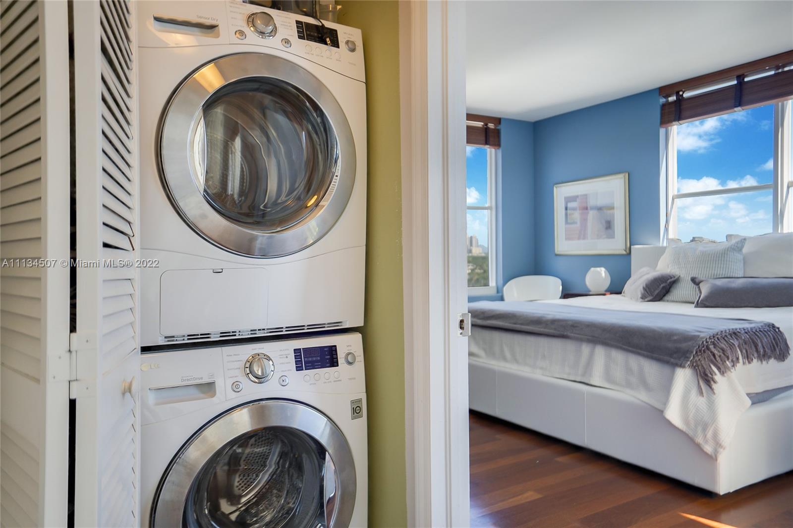 North East corner condo in hot Sunset Harbour neighborhood. Ideal 2/2 floor plan with even sized bedrooms and access to two private balconies, and 2 parking spaces. Wide East views over South Beach. Beautifully upgraded and furnished, including noise-insulated impact windows, wood plank floors, updated to energy saver SS LG kitchen appliances, LG Washer/Dryer in unit, 5 closets, smooth ceilings, tropical accents, and contemporary furniture. Available furnished or unfurnished. Sunset Harbour South provides ideal location walking distance to shopping, restaurants, Lincoln Road and a stunning marina and bay walk. Doorman, security, valet, health club, heated pool, sauna, hot tub. HOA includes reserves, cable and internet. Extra parking spaces available for rent. Unit delivered vacant.