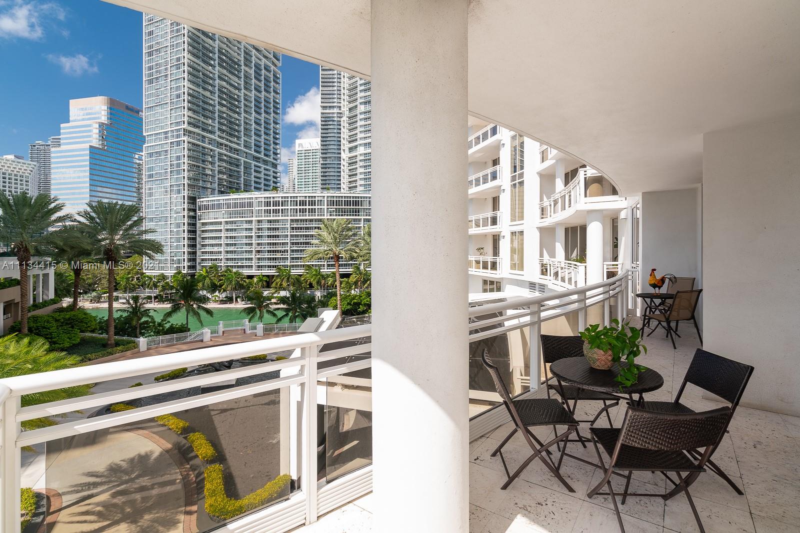 Prestigious Carbonell at exclusive Brickell Key Island. Gorgeous corner with wraparound balcony on the 6th floor. A perfect height to enjoy the tropical vegetation & partial Miami River views. Master suite basks in the morning sun & delights with its openness & space. A split plan layout allows the second suite total privacy. 1,418 SqFt of interior space, wood floors, granite counters, guests half bath & kitchen counter bar that opens to the living/dining area, are some of its remarkable features. Full service building with valet, doorman, concierge, remodeled gym & lobby, new pool deck & BBQ, club room by the water, tennis, basketball & racketball courts. A luxury lifestyle complemented by the island's amenities, a market place, a village green, kids play area & relaxing Bay walk trail.