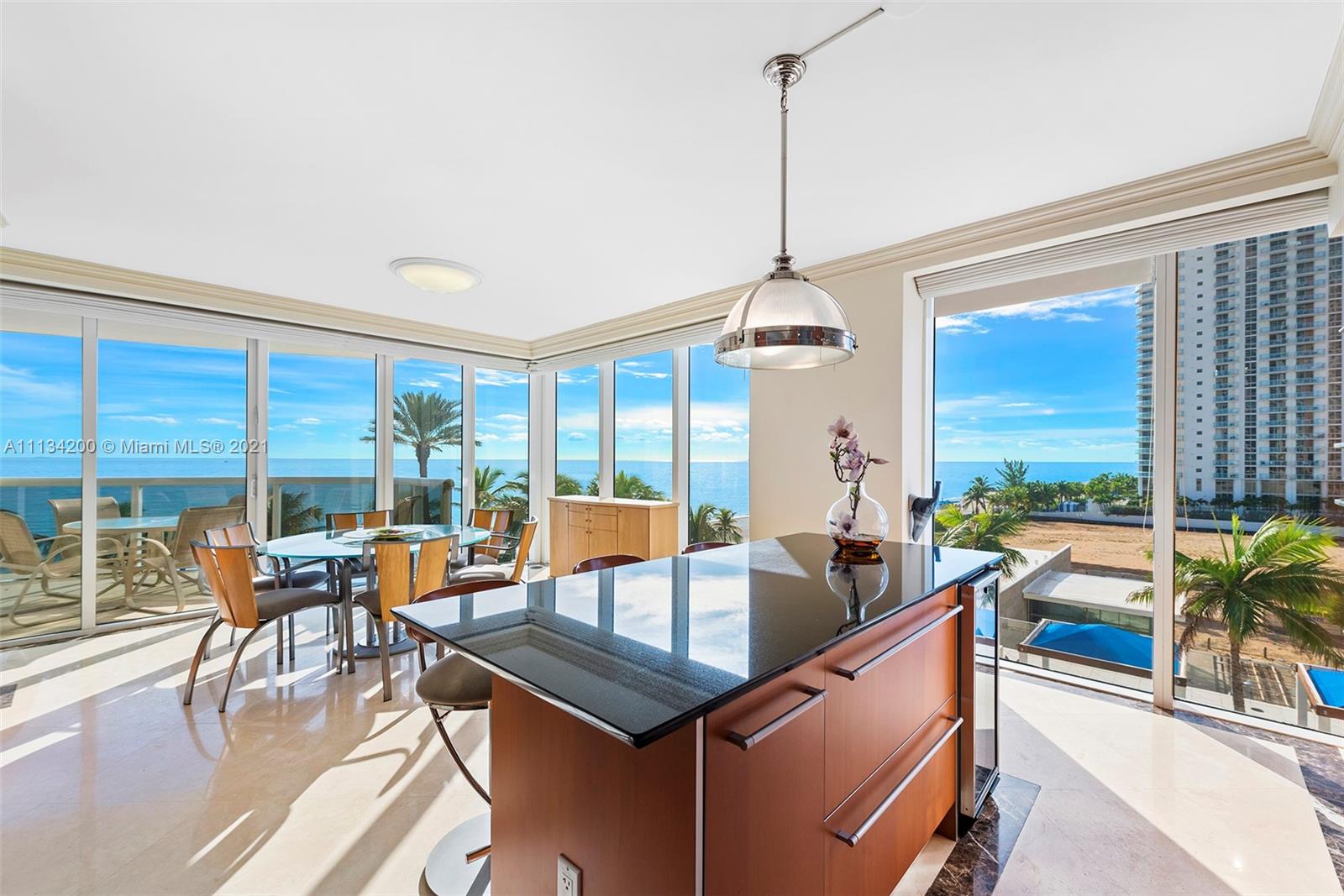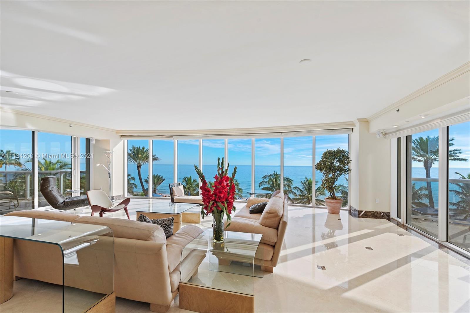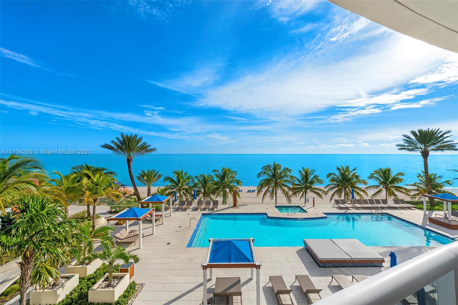Soak in spectacular ocean views from the most coveted line in the building. With private elevator entry, this residence is the ultimate beachfront retreat with the most expansive floorplan available. Offering 4 beds, 4.5 baths with two balconies to the North and South, bright interiors include custom marble flooring and floor to ceiling windows. European kitchen overlooks the water with top-of-the-line appliances, wine fridge, granite countertops and breakfast bar. Master bedroom features spacious marble master bath with stunning views and walk-in closet. Full-service luxury building amenities with resort-style and rooftop hot tub, top-tier gym, restaurant, beach service, tennis courts, security and more. Unit includes 3 parking spaces (A-73, A-74, A-75) and storage space (4CE).