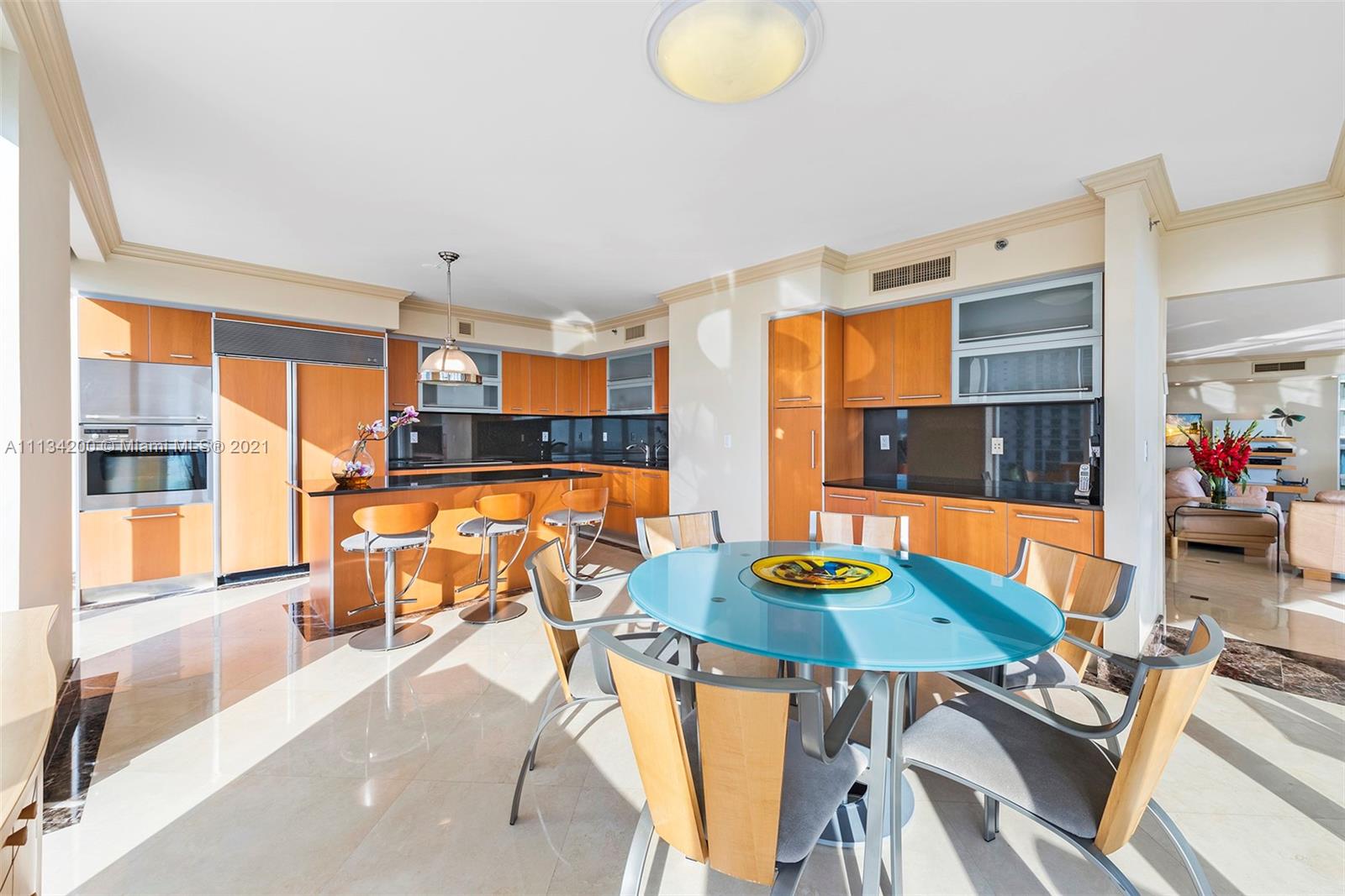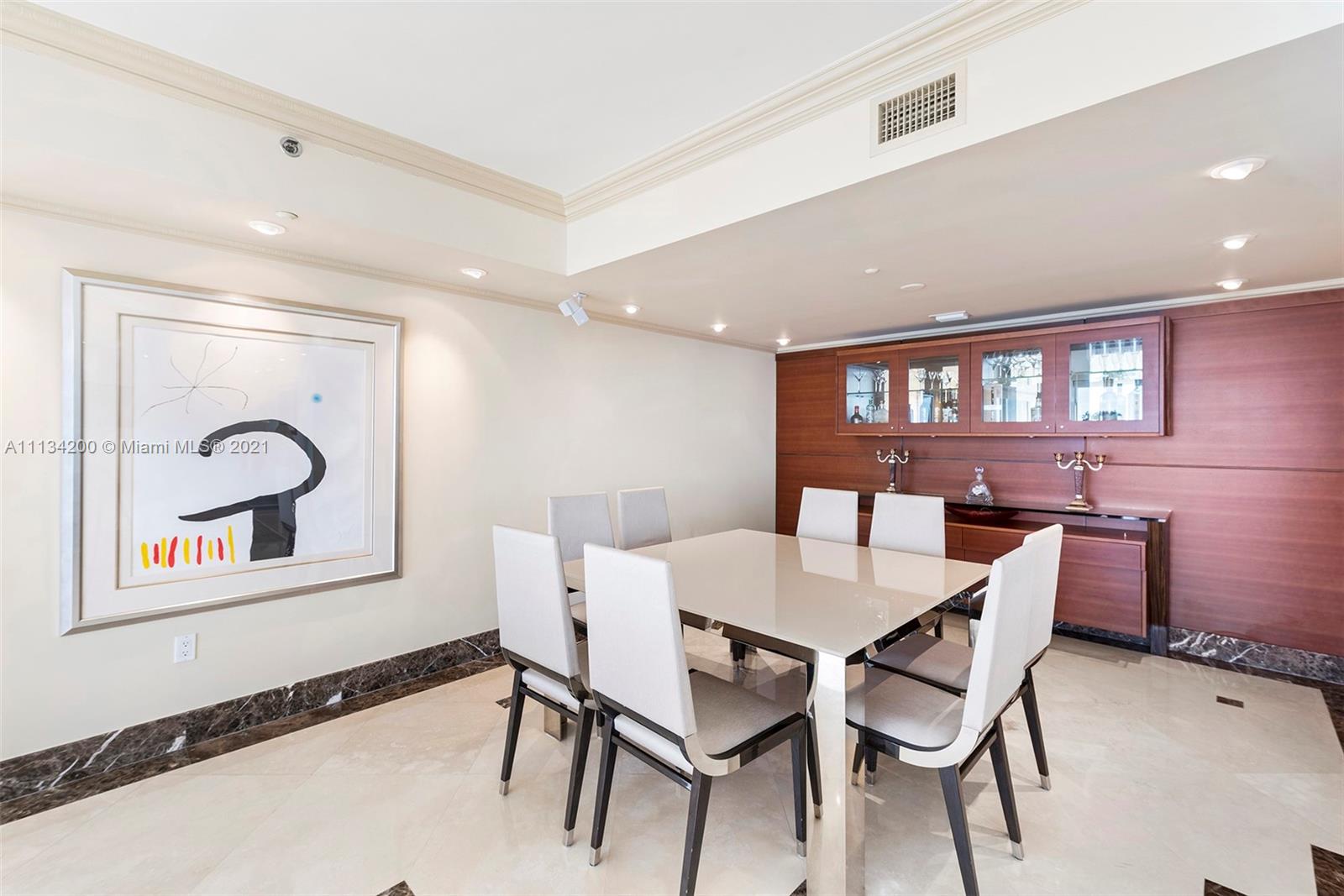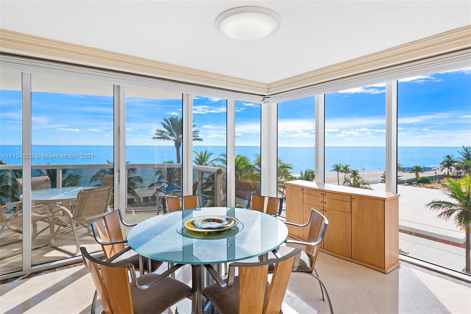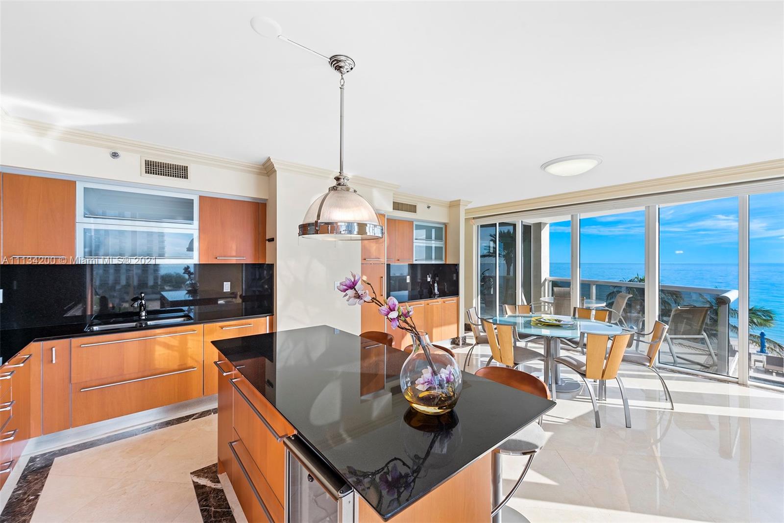 Soak in spectacular ocean views from the most coveted line in the building. With private elevator entry, this residence is the ultimate beachfront retreat with the most expansive floorplan available. Offering 4 beds, 4.5 baths with two balconies to the North and South, bright interiors include custom marble flooring and floor to ceiling windows. European kitchen overlooks the water with top-of-the-line appliances, wine fridge, granite countertops and breakfast bar. Master bedroom features spacious marble master bath with stunning views and walk-in closet. Full-service luxury building amenities with resort-style and rooftop hot tub, top-tier gym, restaurant, beach service, tennis courts, security and more. Unit includes 3 parking spaces (A-73, A-74, A-75) and storage space (4CE).