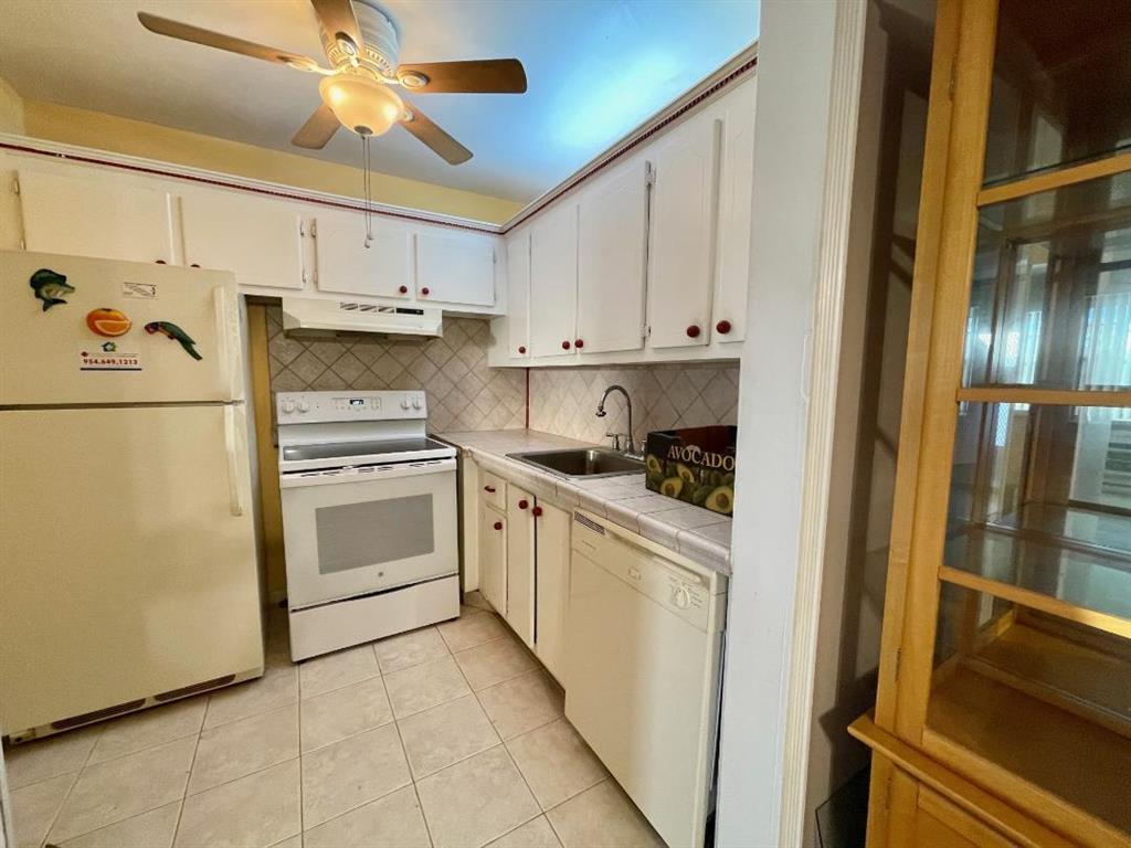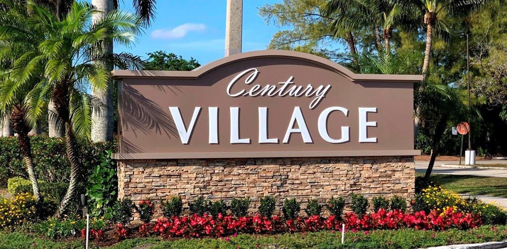 This popular 1/1.5 floor plan in 55+ Century Village is a great spot for your Florida home! Kitchen features white cabinets, tile floors, and a dishwasher. Updated half bath. Spacious bedroom suite with full en-suite bath, wall of closets, and access to screened lanai. Accordion shutters on front and back windows. Sold AS IS and with furnishings as shown. Century Village is a 55+ community with so much to offer...