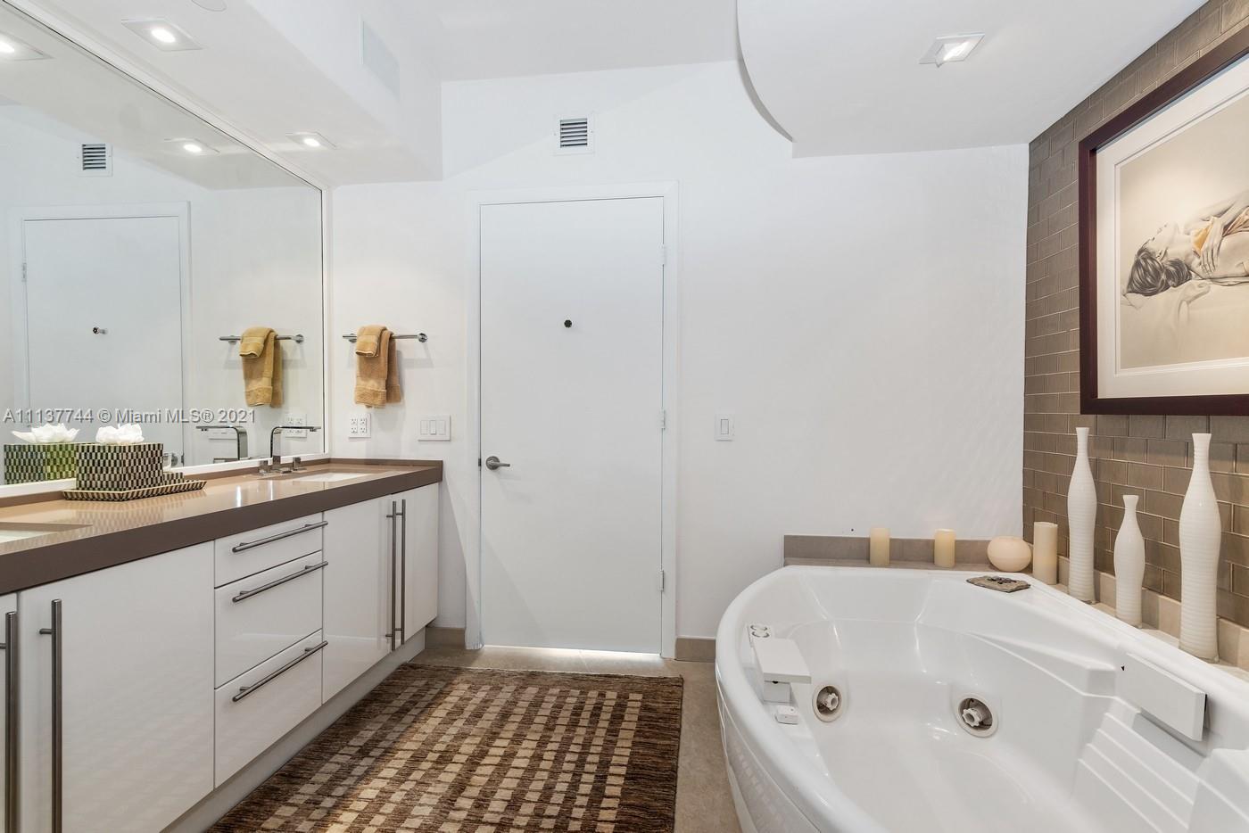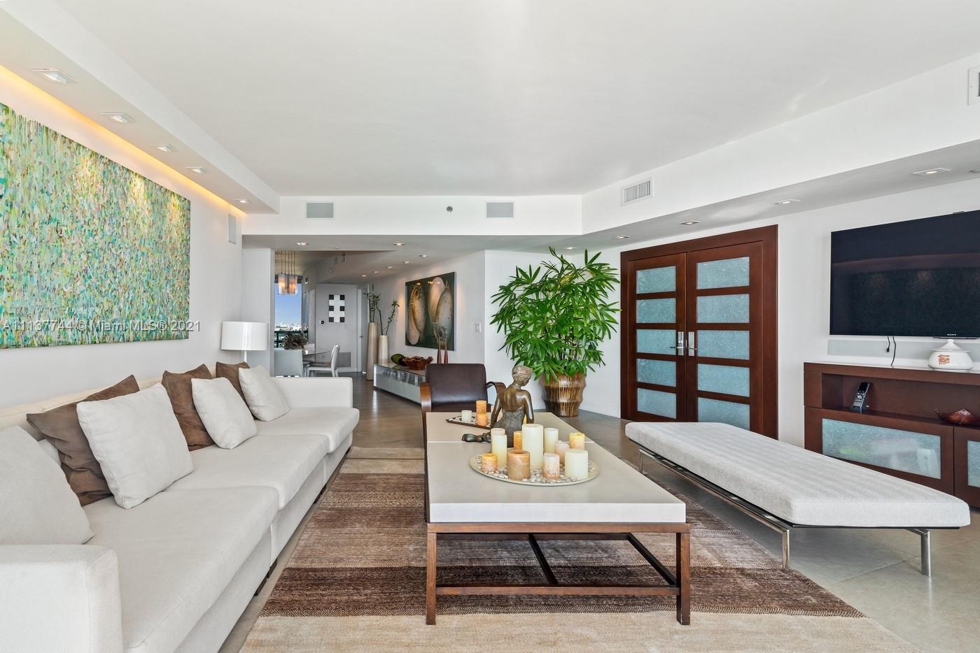 Murano At Portofino flow-through 03 Line offering unobstructed views of Government Cut, the Bay, Fisher Island, and the Downtown skyline. With private entry foyer, floor to ceiling windows, 2 balconies, third bedroom could be used as an office or bedroom. Amenities include tennis courts, BBQ area, fitness and spa, 2 pools including the Piaggia Beach Club with restaurant. Located South of Fifth, Miami Beach most prestegious residential address, walking distance to many restaurants including Carbone, Smith & Wollensky, Prime 112, Prime Italian, Red Steakhouse and many more.