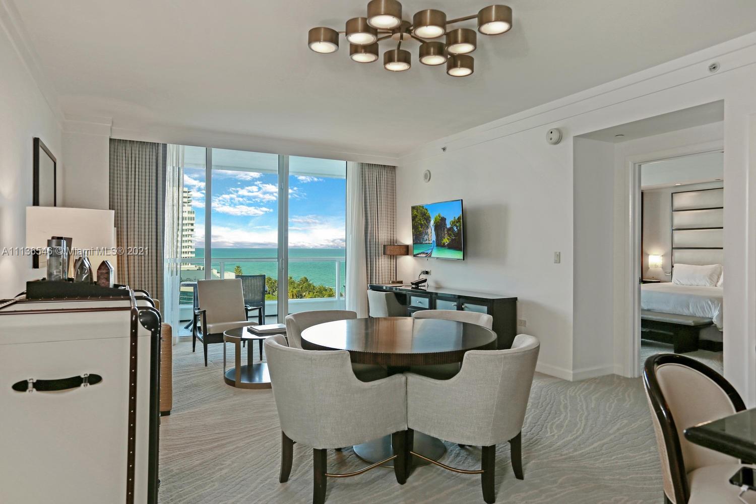 Be part of all the action in the beautiful just refurbished 1 bedroom/ 1.5 bath with ocean & hotel pool views at The Fontainebleau III. Enjoy full service, vacation-style living in a furnished turnkey unit with king bed, full kitchen, washer/dryer, extended balcony, sleeper sofa & more. Enroll in hotel rental program & receive income while away! The Fontainebleau Resort offers luxury amenities on 22 oceanfront acres including award-winning restaurants, LIV night club, Lapis spa & state-of-the-art fitness center. Maintenance includes: AC, local calls, electricity, valet + daily free breakfast in the owners lounge.