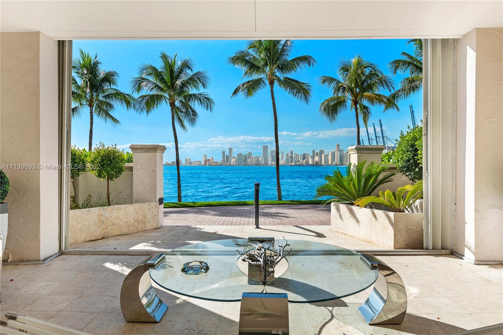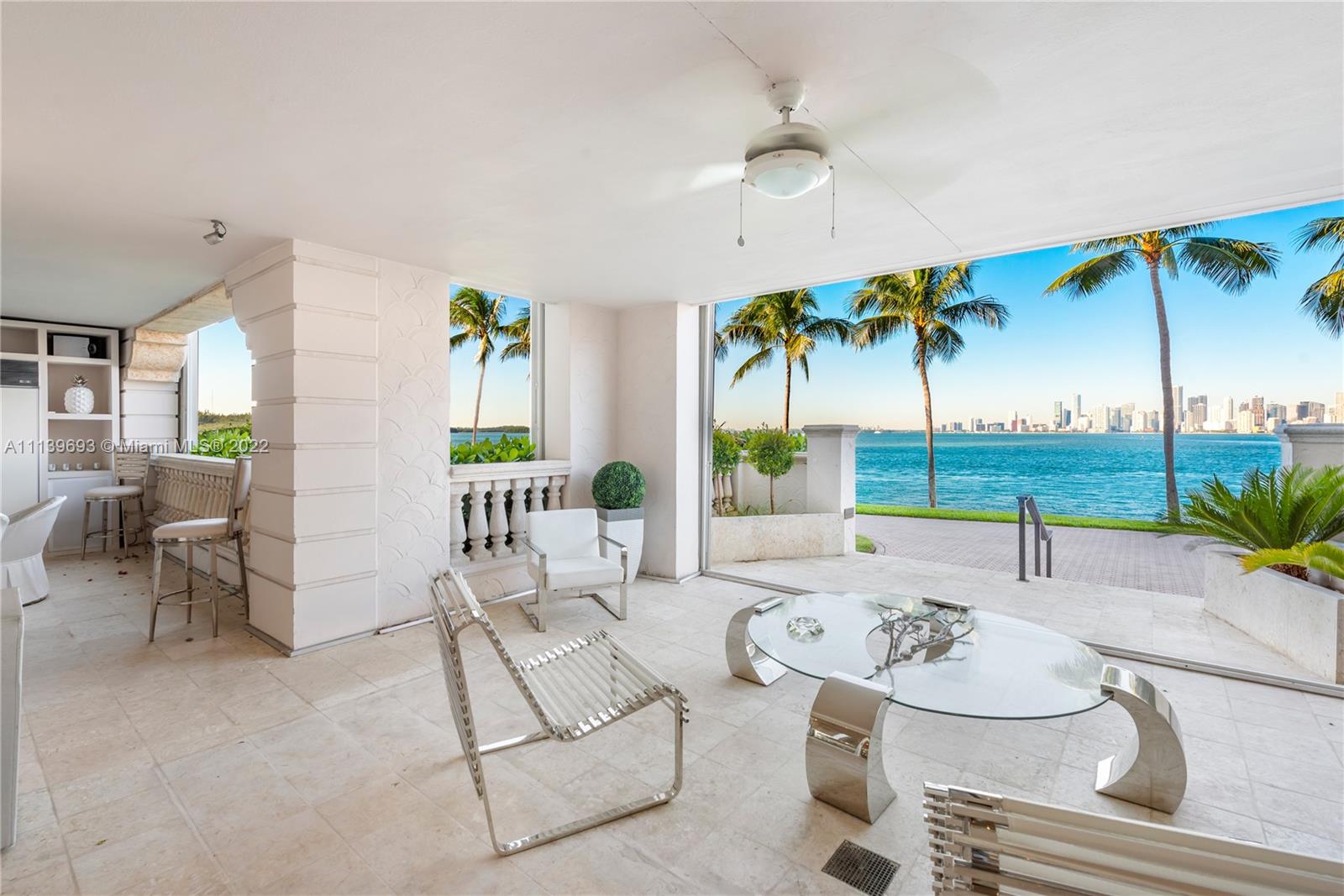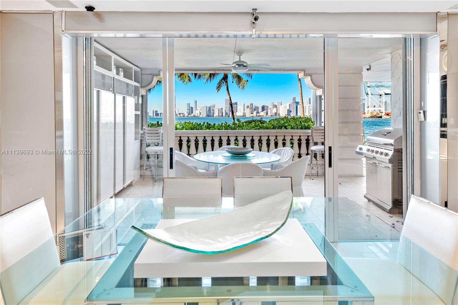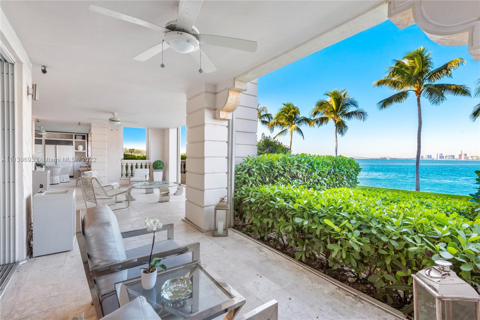 Experience Fisher Island living at it's finest in this stunning renovated ground floor Bayview unit. This one of a kind masterpiece encompasses 6,209 sq ft interior and 2,516 sq ft of expansive terraces overlooking the Miami downtown skyline and Biscayne Bay with breathtaking sunset views! This 5 bedroom, 5 bath + 2 powder room residence has been professionally designed with FENDI wallpaper and door panels throughout. The unit showcases: spacious open living room with a bar and formal dining, exquisite white porcelain & oak floors, a Chef's kitchen with top of the line appliances, an eat-in center island, a built-in surround sound system and many more features. Visit this exceptional fully furnished unit! Easy to show!
