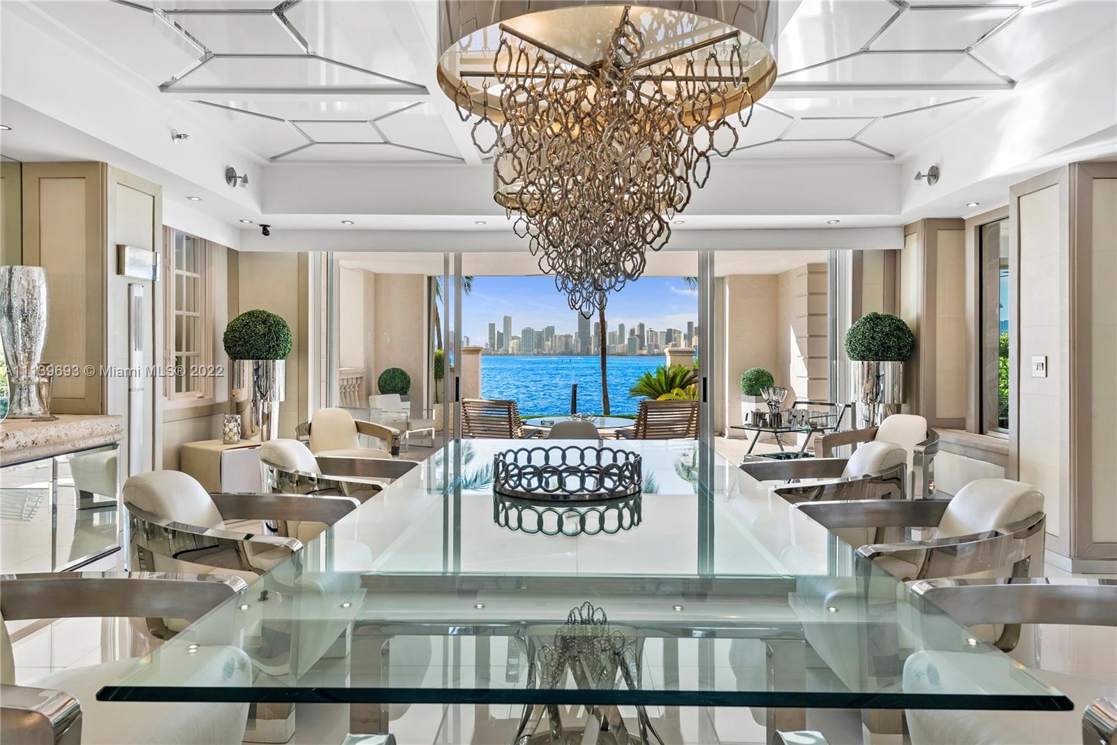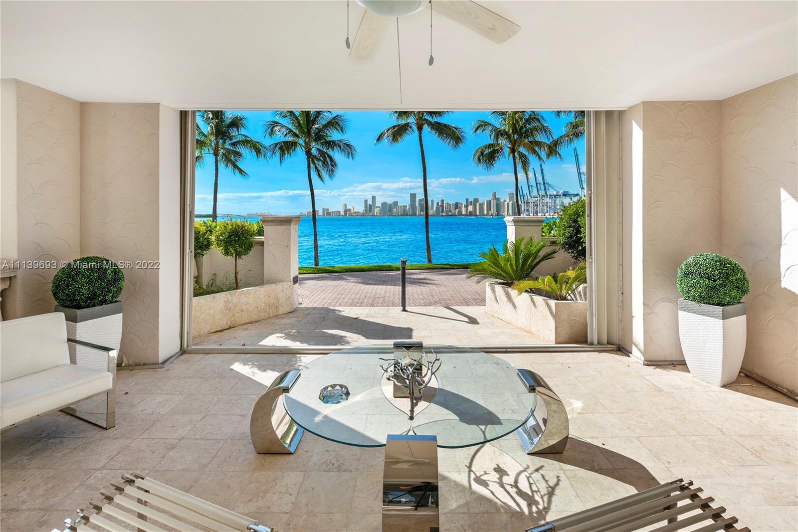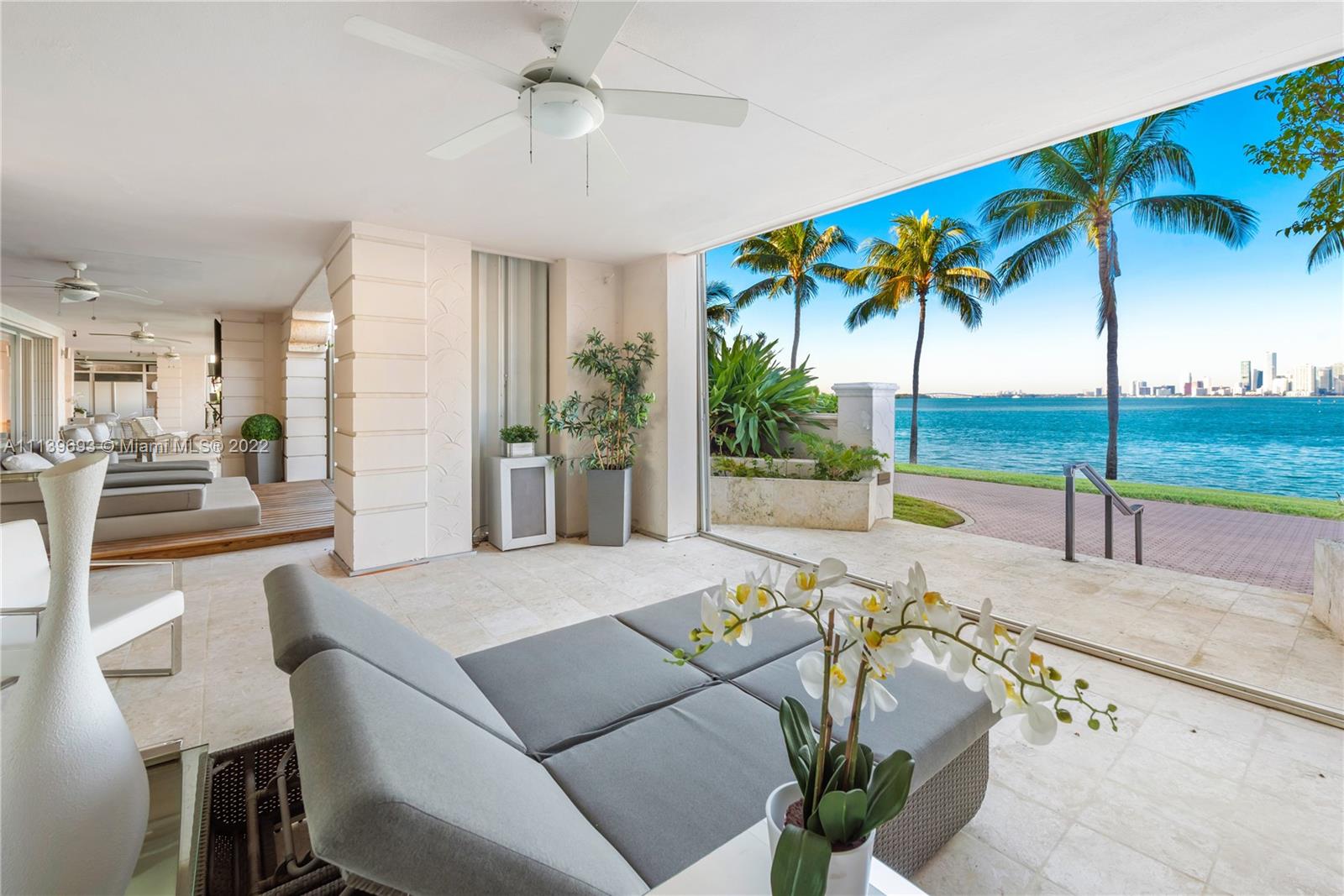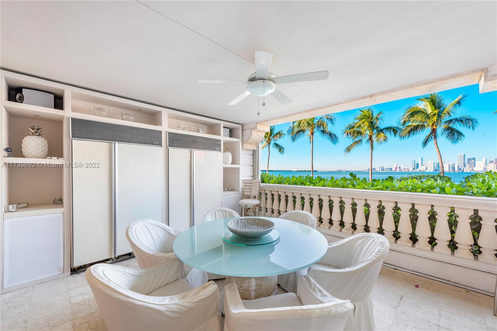 Experience Fisher Island living at it's finest in this stunning renovated ground floor Bayview unit. This one of a kind masterpiece encompasses 6,209 sq ft interior and 2,516 sq ft of expansive terraces overlooking the Miami downtown skyline and Biscayne Bay with breathtaking sunset views! This 5 bedroom, 5 bath + 2 powder room residence has been professionally designed with FENDI wallpaper and door panels throughout. The unit showcases: spacious open living room with a bar and formal dining, exquisite white porcelain & oak floors, a Chef's kitchen with top of the line appliances, an eat-in center island, a built-in surround sound system and many more features. Visit this exceptional fully furnished unit! Easy to show!