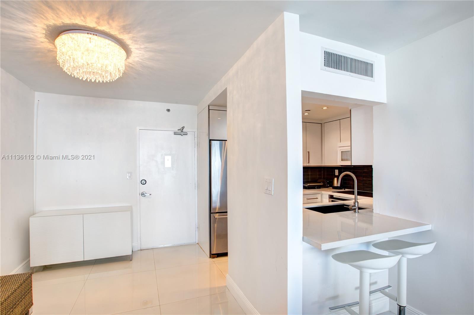 Fully gutted, high-end renovations, BOSCH washer and dryer inside the unit, porcelain tiles, quartz countertops, custom kitchen cabinets, Bay and city views , high floor, impact windows and sliding doors, open balcony, double sink vanity, frameless shower enclsoure !!This is a beautiful 1-1 on the most convenient and sought after West Ave, across the Whole Foods, next to Mondrian and right on the Bay!Professional gym, 24 hour valet, front desk, doorman pool, hot tub, BBQ, convenience store, full service building!