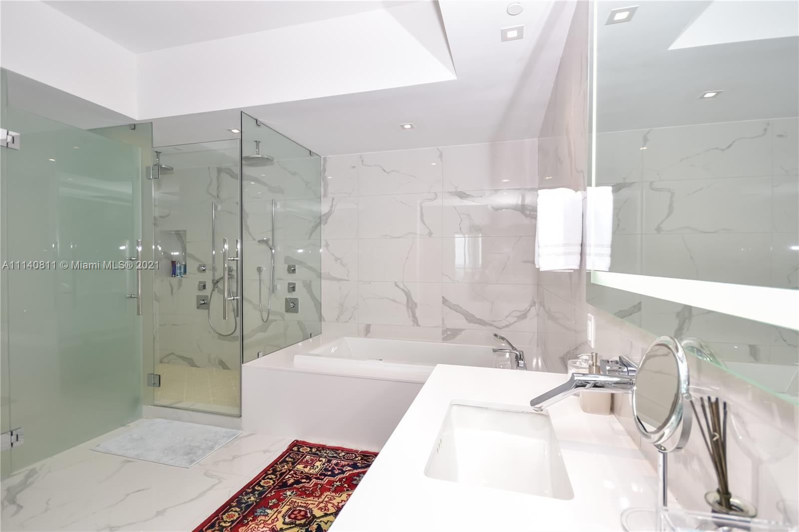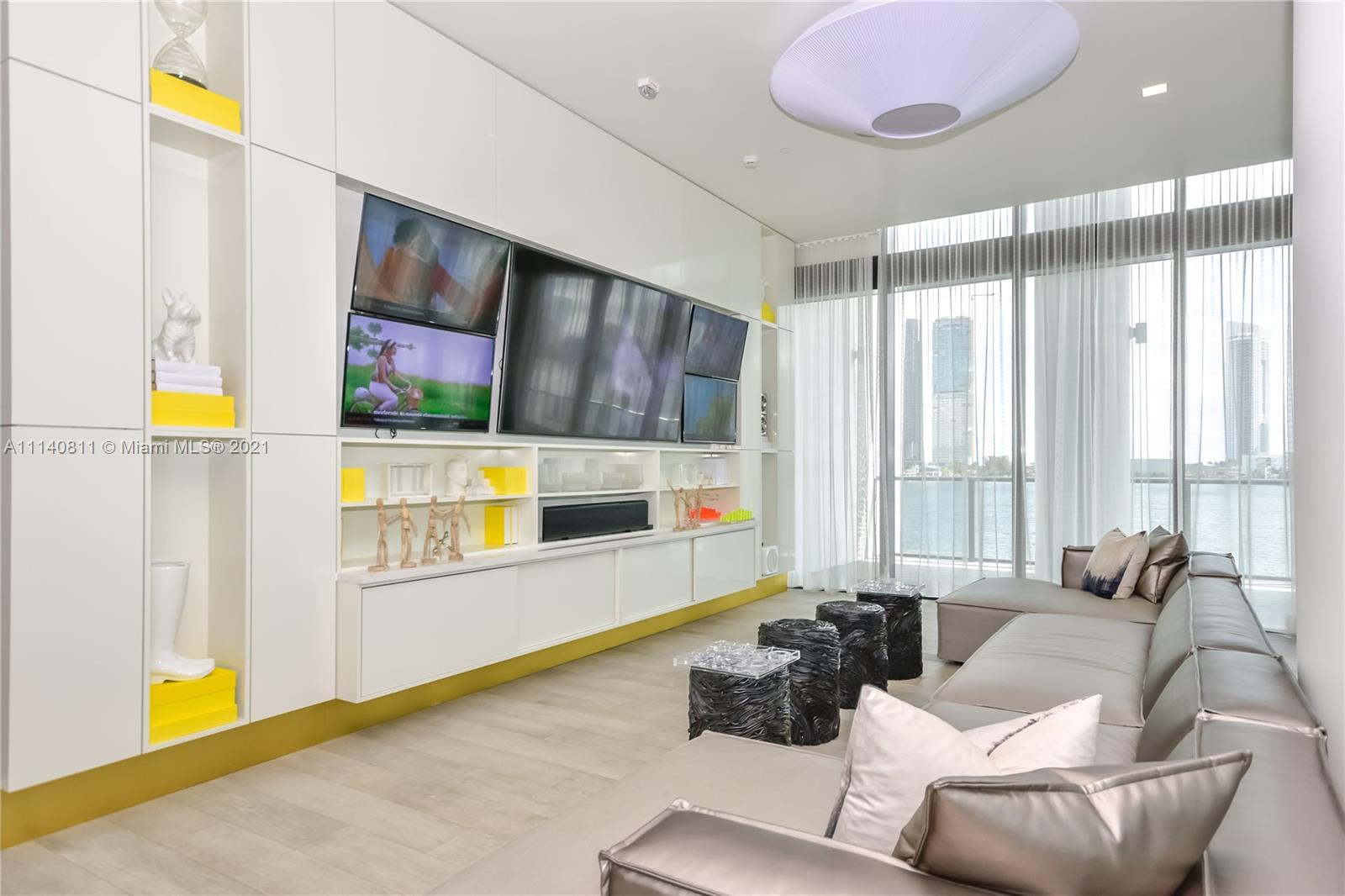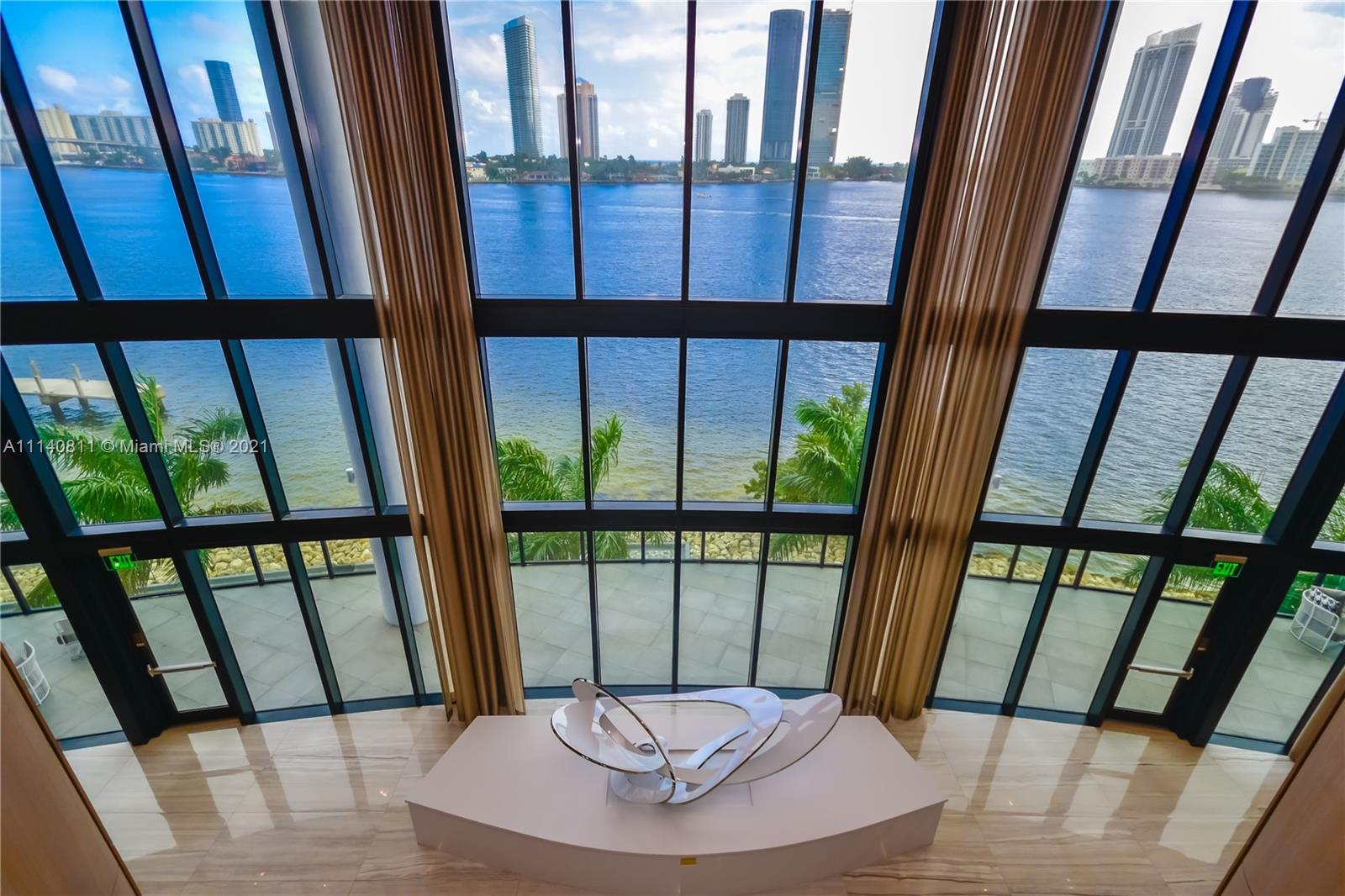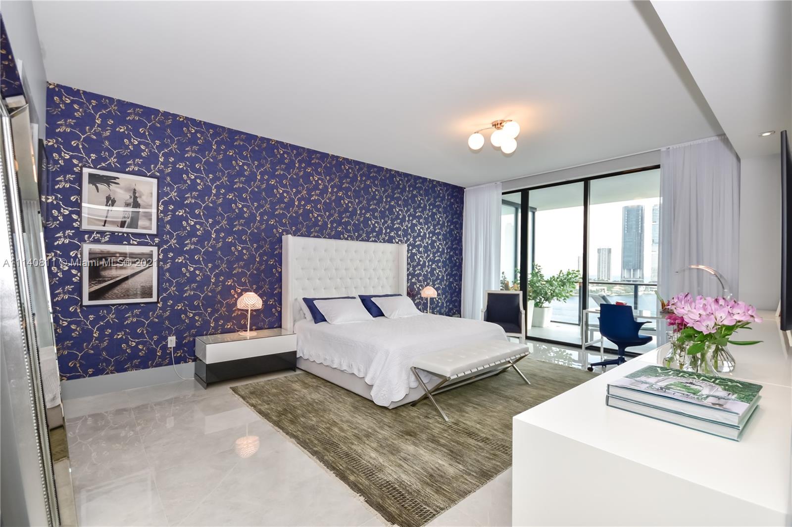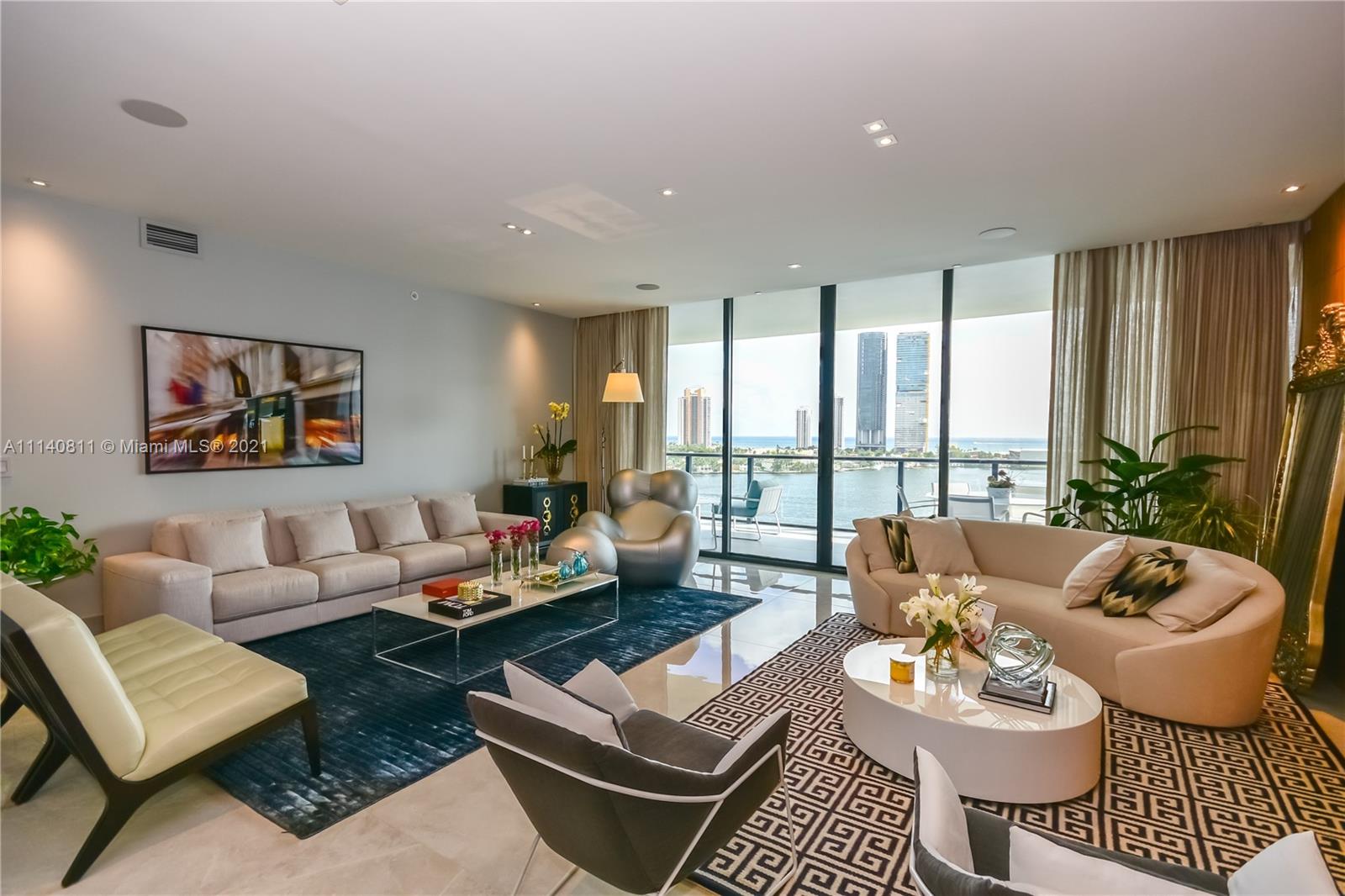 Impressive and unique large unit at PRIVE. A magnificent complex in an 8-acre private island in Aventura. This gorgeous unit features a flow-through lay out w/3 bedrooms + den/4,5 baths & breathtaking views to Bay/Ocean from every window/10’-foot floor -to -ceiling glass windows & deep terraces with barbecue . European grey Italian porcelain 48 x 48 floor, sound system .Has a built storage room, high end custom made walk-in closets,. Private elevator & modern European Kitchen. Amenities include: Gym/Spa, large pool deck with East/West views;2 pools & pool bar service, restaurant/cafe on site; entertainments room, cigar room, wine room, tennis courts, boat dock, children's playground & game room and much more. 3 assigned parking spaces.