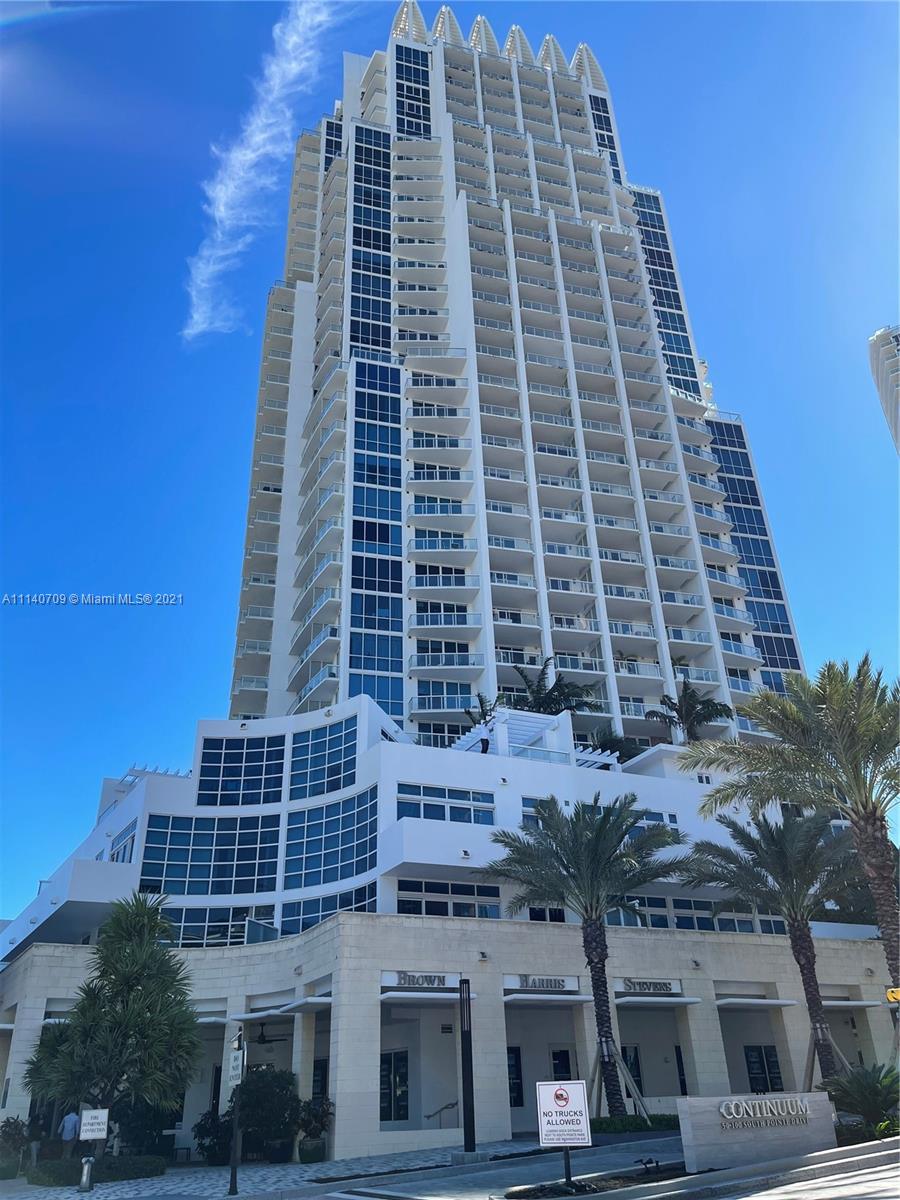 The perfect pied-à-terre at the Continuum North Tower is here! This 1 bed 1 bath overlooks the ocean and Miami Beach skyline with a generous 200/sf wraparound terrace with access from every room. Unit features an open kitchen with breakfast bar, Italian cabinetry , Sub Zero refrigerator, Miele dishwasher and oven, granite countertops, high ceilings, ebony wood floors, marble bath with Waterworks fixtures, closet built-ins and more features throughout. Enjoy this 5 Star resort style living offering the best services and amenities from a fully equipped fitness center and spa, 3 pools, tennis courts, beach service, restaurant , concierge, owners lounge and much more!