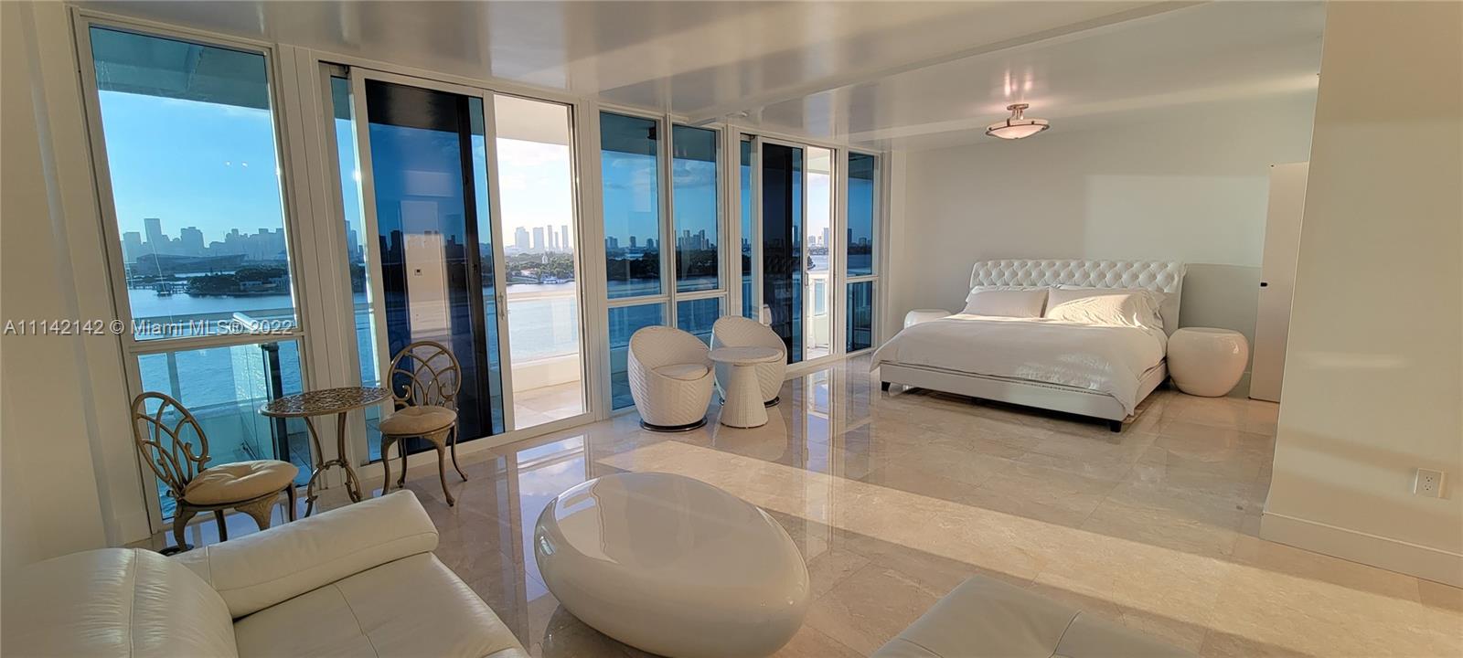 Stunning 12th floor unit in the prestigious Bentley Bay North tower with unobstructed city skyline & Biscayne Bay views. Only 4 units per floor, this 1/1 was converted into a fully open studio plan that is PERFECT for entertaining. (Unit can be rented 12 times a year. Enjoy it yourself & rent it when you are away to generate excellent income.) The renovated bathroom features double showers & double sinks. The kitchen was also opened to enjoy the direct sunset views. Marble floors throughout. The Bentley Bay amenities include a large pool with cabanas, gym, sauna & steam room, two garden hot tubs, BBQ area, 24/7 security. WIFI, Cable and valet included in HOA. Located walking distance to South Pointe Park, the South Beach Marina, Whole Foods, and West Avenue restaurants & shops.