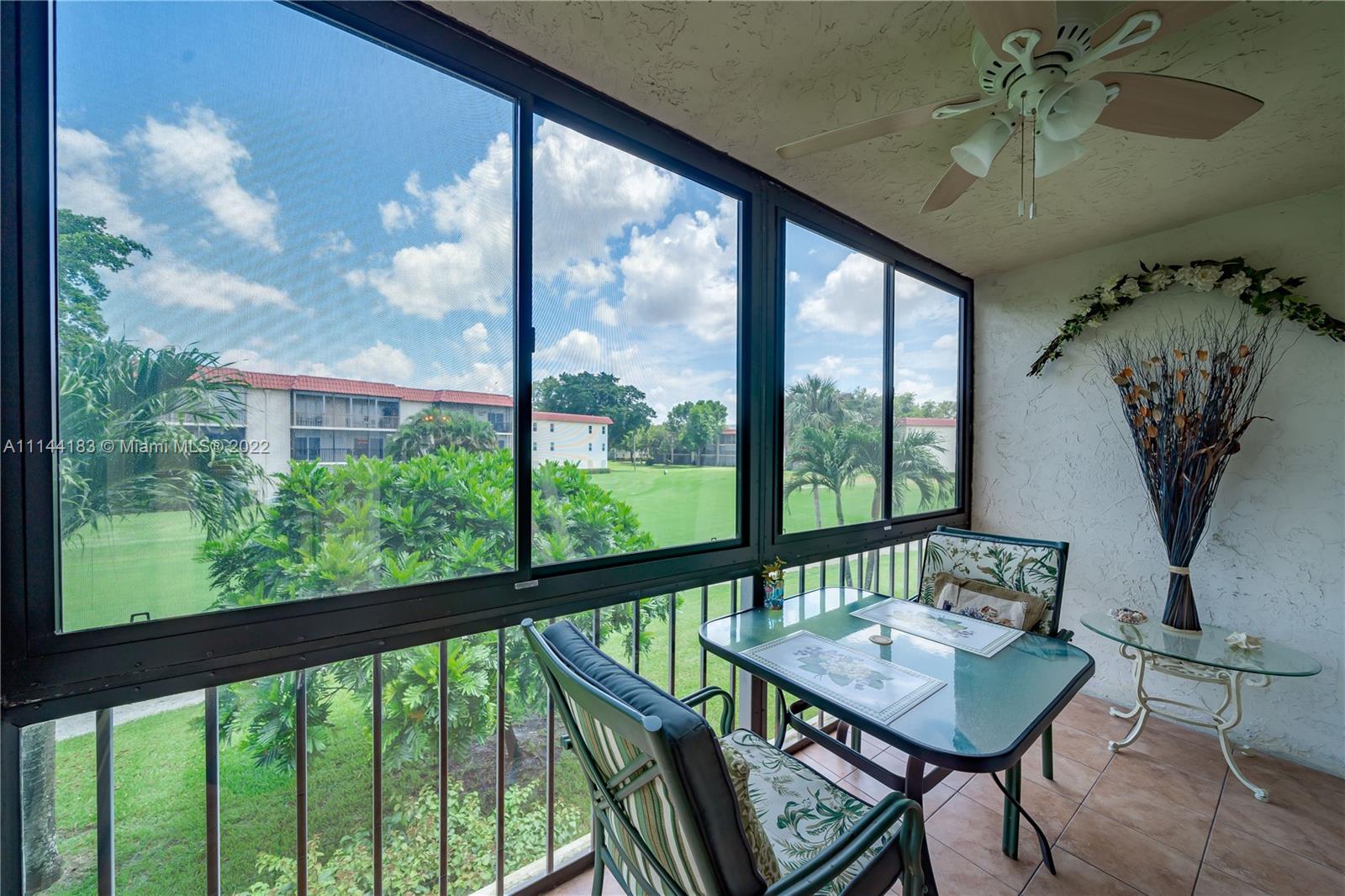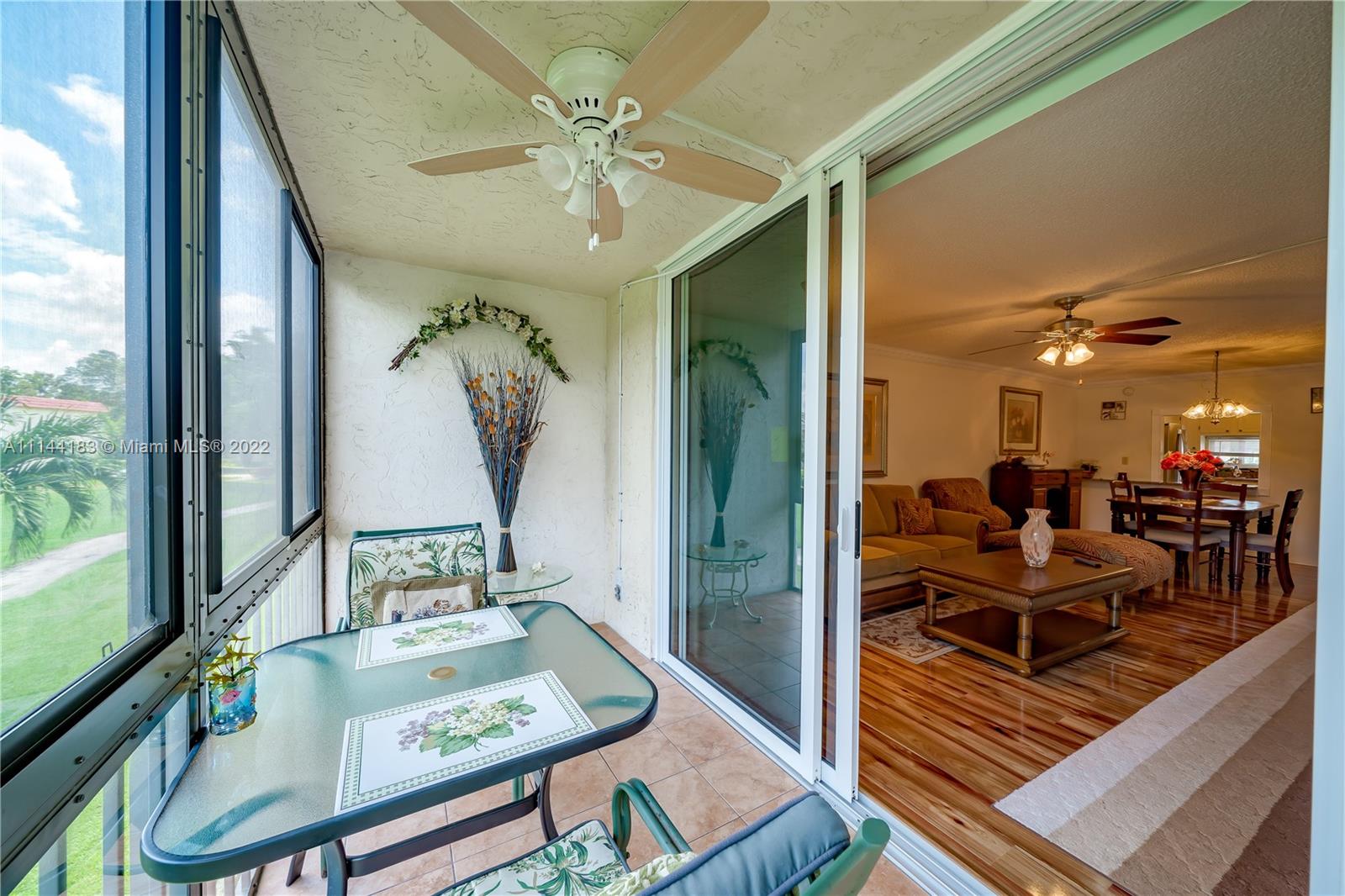 Turn key and tastefully upgraded 2 bedrooms 2 bathrooms with granite countertop and contemporary backsplash. Stainless steel appliances. High-end parquet wood flooring. Hurricane impact windows and an enclosed patio give you peace of mind. Knowing your property is safe and secure from any storm. Whether you're on the property or out of the country. Enjoy the neatly manicured Par 3 golf course from your enclosed patio. With the luxury of being in the air conditioning. Walk-in closets are located in both bedrooms. PAID REC LEASE. Live amongst the most affluent in the prestigious PET-FRIENDLY Hollybrook Golf & Tennis Club.