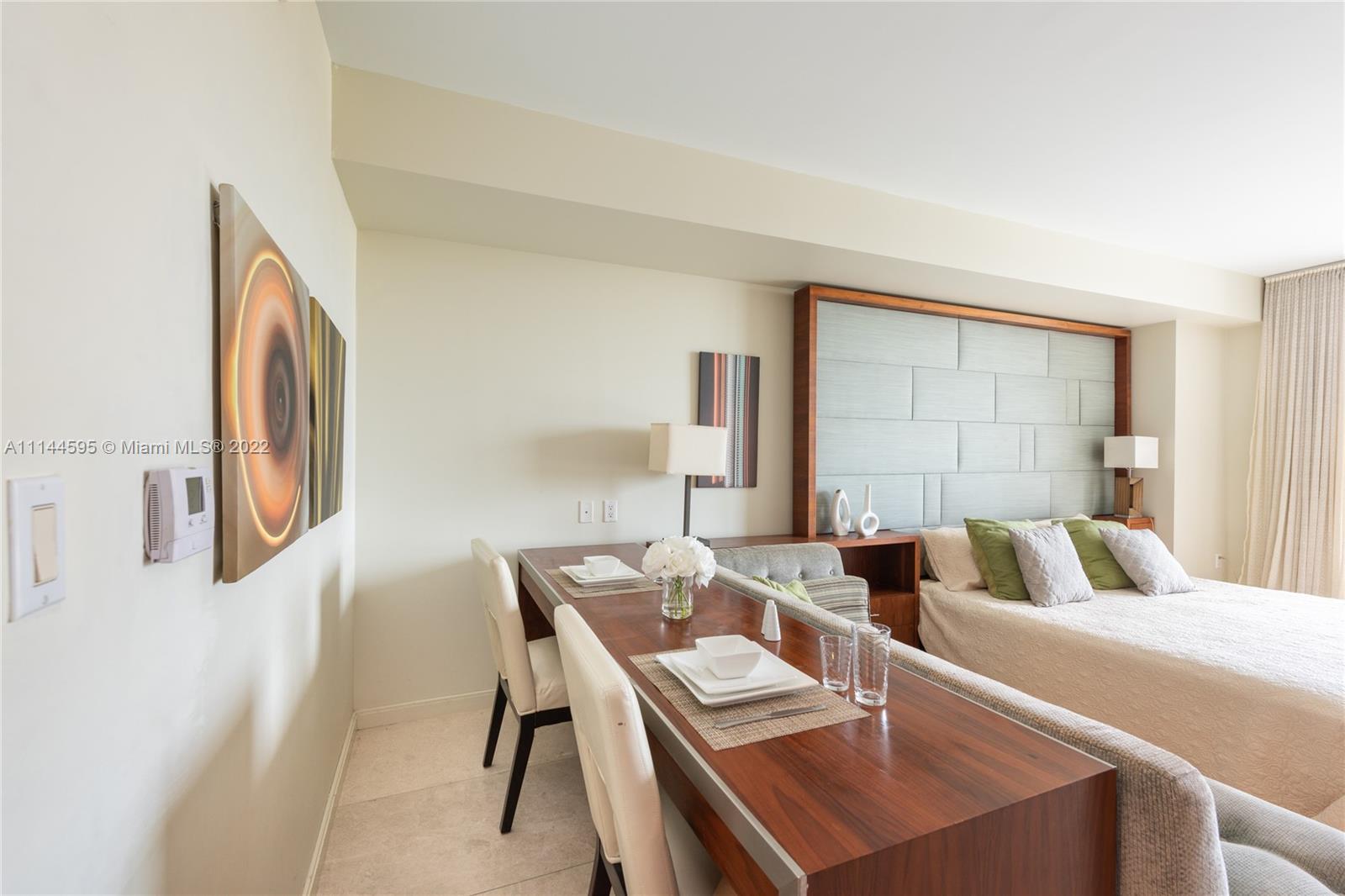 This is a fully furnished and equipped park suite Studio professionally decorated. Leases from 30 Days to One Year. Park Suites are the only furnished units offering direct EAST views of the Bay and Bayfront Park. Amenities include: Gym, Pilates, Spa, Pool, Formal and informal clubhouse, 24-hr security, valet service, concierge, wireless internet, basic cable & more!