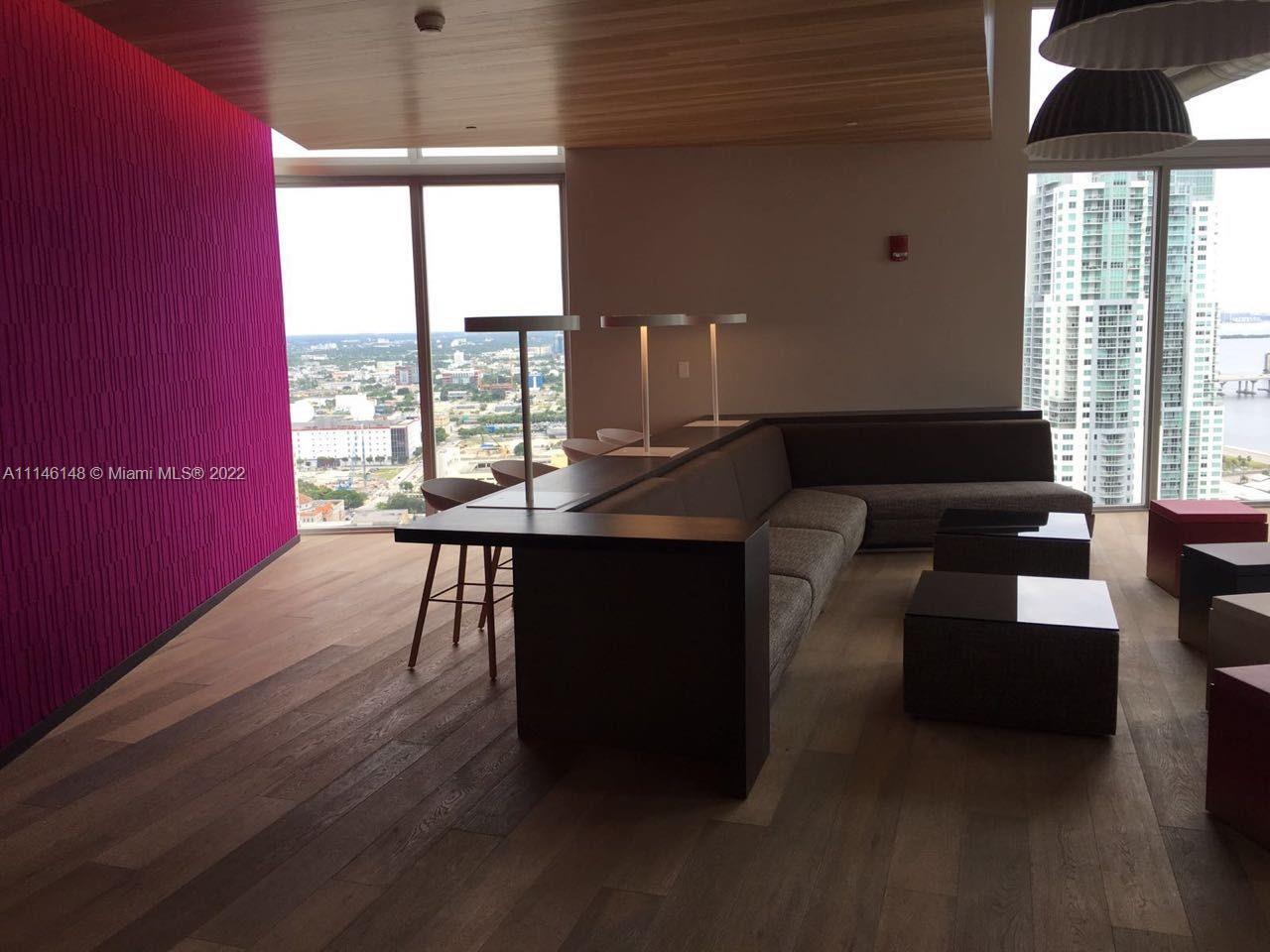 Come live in the heart of Downtown Miami. This Centro Penthouse is spacious and comfort wrapped into one. The unit features concrete floors, 10-ft high ceilings, stainless steel smart kitchen appliances, and Italian cabinetry. Balcony with pocket views of the Bay and breathtaking city views that light up the night. Included amenities: rooftop pool with 360 view of Miami, 2-story PH Lounge Area, Gym, Sauna and Steam Room. Basic internet and water included in HOA. Building does not have parking garage but building offers valet parking for $225/month or parking at Miami Tower Building for $150/month.