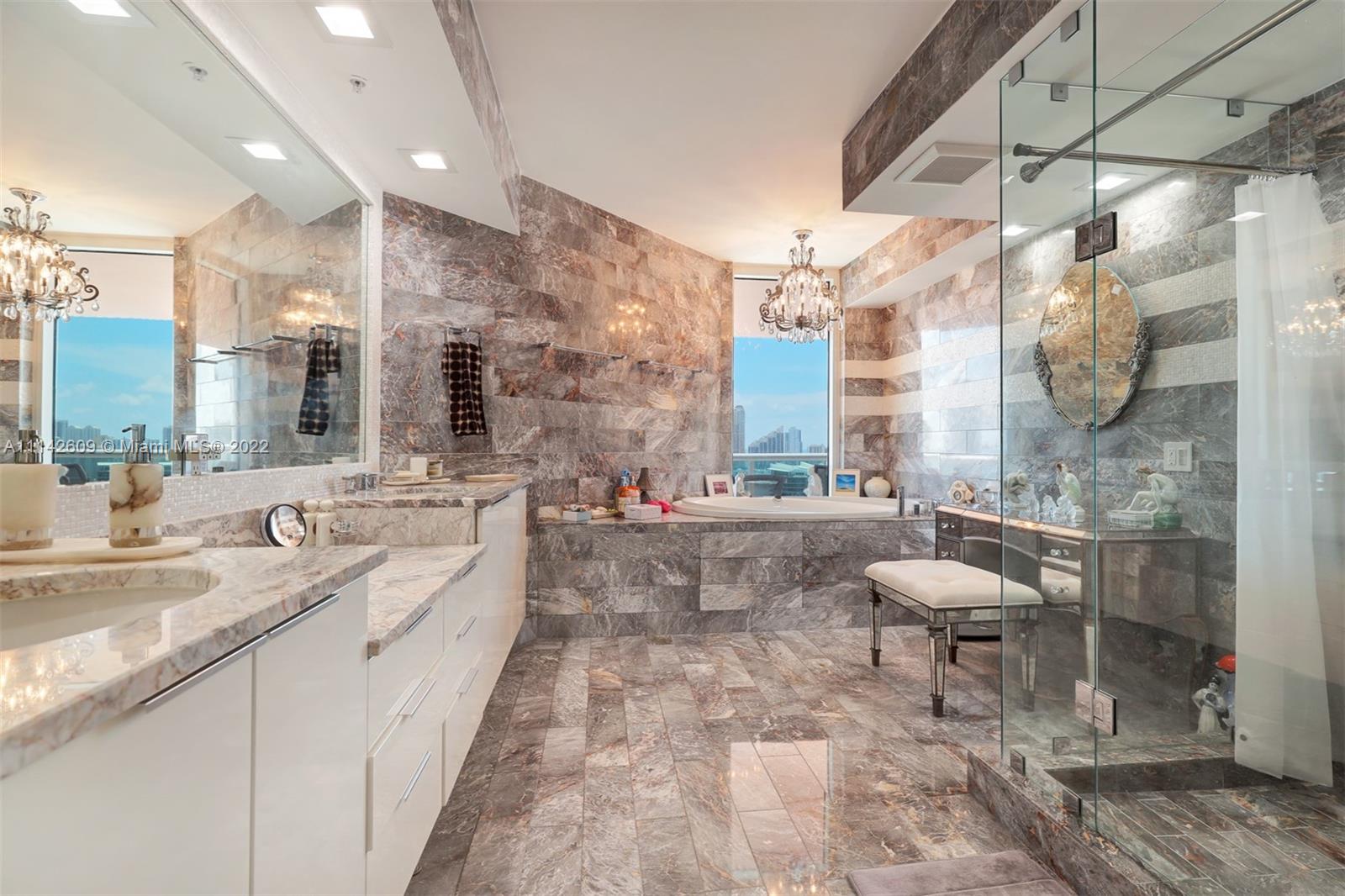 EXQUISITE UNIT, OVER 4000 SQ FT, RARELY AVAILABLE MODEL IN HIDDEN BAY. SE EXPOSURE WITH PANORAMIC VIEWS OF BAY, OCEAN, INTRACOASTAL AND CITY SKYLINE. 3 LARGE BALCONIES. PRIVATE ELEVATORS, OPEN FLOOR PLAN, LARGE GOURMET KITCHEN WITH COOKING ISLAND, WALK-IN CLOSETS, LAUNDRY ROOM. SPLIT IN-SUITE BEDROOMS, MASTER IN SEPARATE WING FEATURING 2 LARGE WALK-INS. MARBLE FLOORS, WOOD FLOORS IN BEDROOMS. TWO NEW AC UNITS AND UPGRADED INSTANT WATER HEATER. 3 GARAGE PARKING SPACES. STORAGE ROOM. AMENITIES INCLUDE TENNIS COURTS, EXERCISE ROOM, CLUBHOUSE, BILLIARDS, POOL, PRIVATE MARINA, BBQ AREA, CONCIERGE, VALET, SECURITY, PARK AND DOG WALK. COMPLEX IS GATED. WITHIN IMMEDIATE PROXIMITY OF AVENTURA MALL, OCEAN, RESTAURANTS AND SHOPPING PLAZAS. CLOSE TO BOTH MAJOR AIRPORTS. PLEASE SEE BROKER REMARKS.